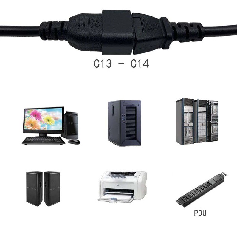 สายไฟ AC หัว ผู้-เมีย Black IEC320 C13 Female to C14 Male UPS PDU Power Cord 1.0mmx2 Desktop Computer 10A 250V 3 Cores.