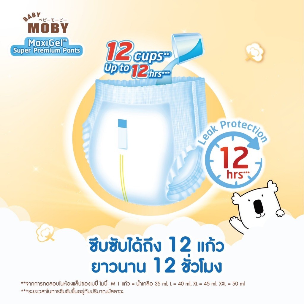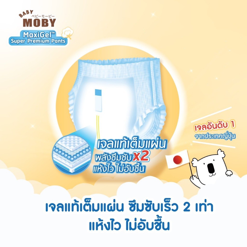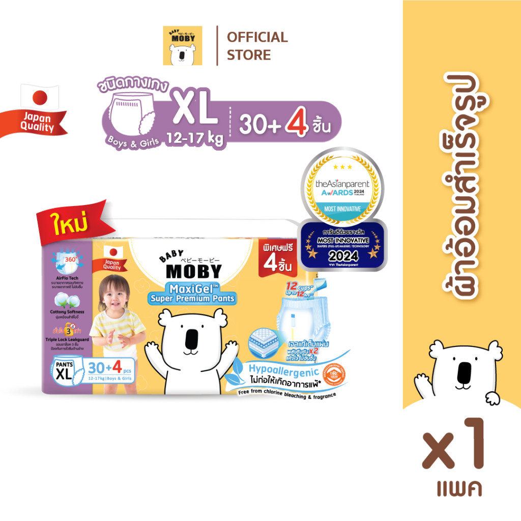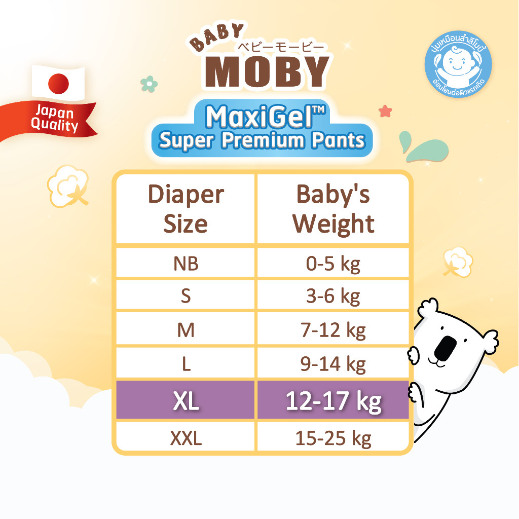 ผ้าอ้อมสำเร็จรูป รุ่น MaxiGel ชนิดกางเกง ไซซ์ XL*30+4 สำหรับลูกน้ำหนัก 12-17 Kg.ใหม่ ! เบบี้โมบี้ MaxiGel ใช้