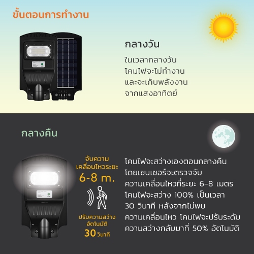 LAMPTAN โคมไฟถนนพลังงานแสงอาทิตย์ Solar Streetlight Sunny พร้อมเซนเซอร์ความสว่างและความเคลื่อนไหว
