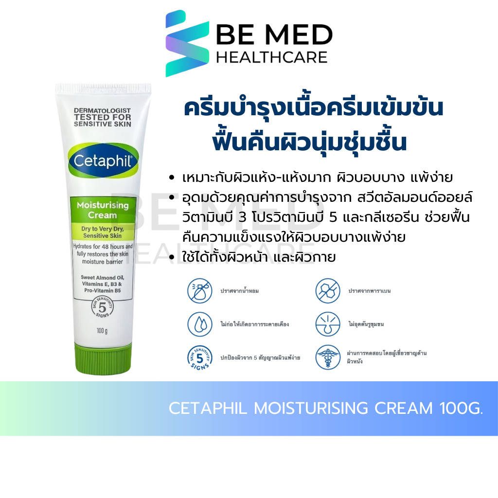 Cetaphil Moisturising Cream 100g. ครีมบำรุงเนื้อครีมเข้มข้น เหมาะสำหรับผิวแห้ง–ผิวแห้งมาก