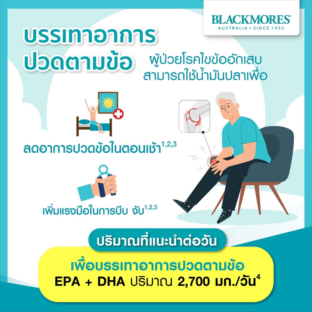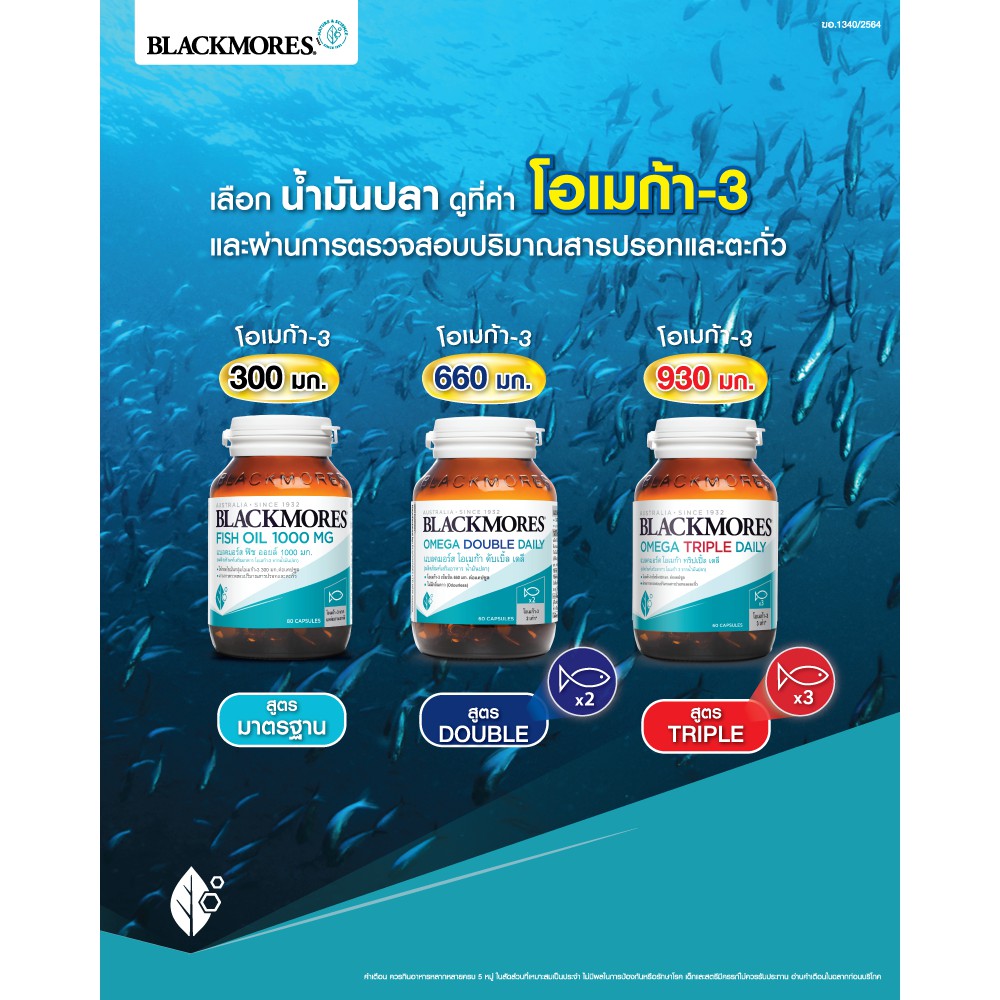 Exp 10/27 Blackmores Omega Triple daily 60 แบลคมอร์ส โอเมก้า 60 แคปซูล น้ำมันปลา วิตามิน ตับปลา