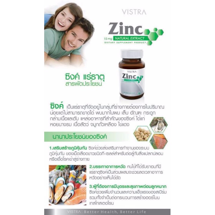 ส่วนประกอบ Vistra Zinc 15 mg. ที่สำคัญใน 1 แคปซูล