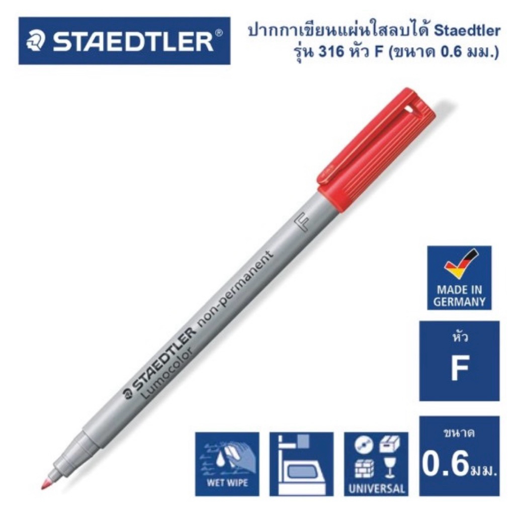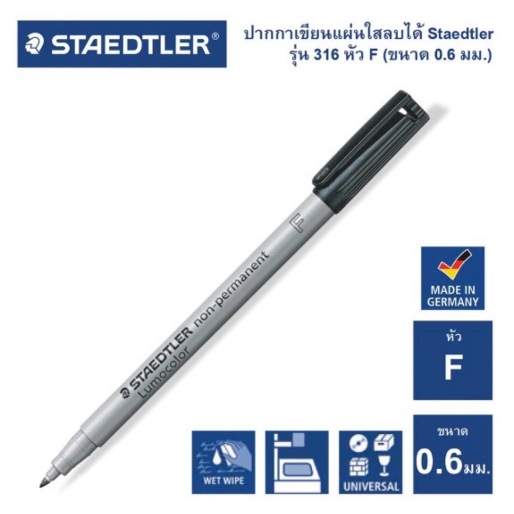 ปากกาเขียนแผ่นใส ลบได้ STAEDTLER หัว F ขนาด 0.6 มม.