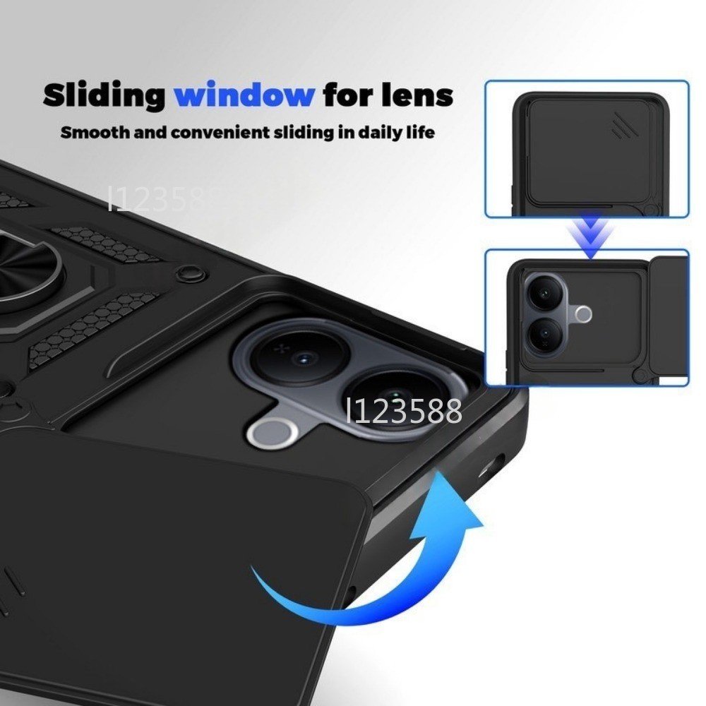 สําหรับ VivoV60Lite สําหรับ Vivo V60 Lite 5G 4G V60Lite 2025 กล้องสไลด์เลนส์ป้องกันเคสโทรศัพท์ Car Mount อัตโนมัติดูดแหวนผู้ถือ Hard Case