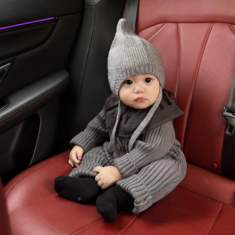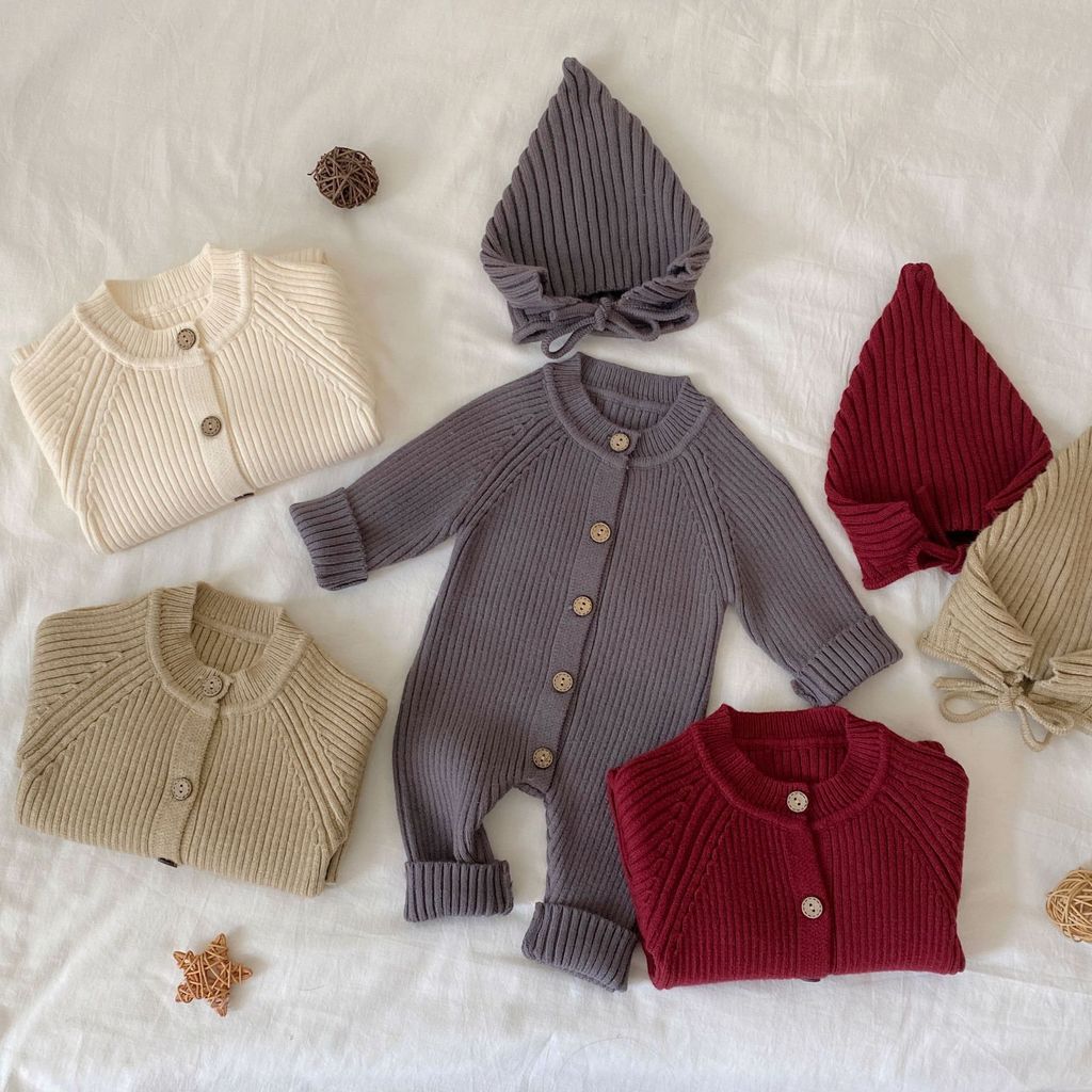 ชุดจั๊มสูทถักทารกแรกเกิดพร้อมหมวกแหลมและเสื้อแขนยาว ทำจากผ้าอบอุ่มนุ่ม เหมาะสำหรับฤดูหนาว