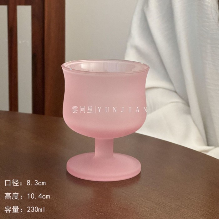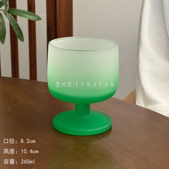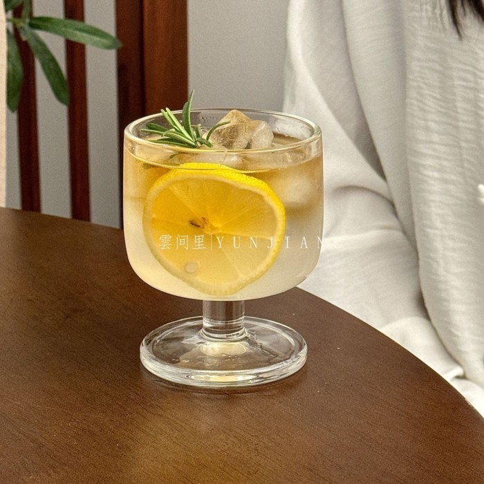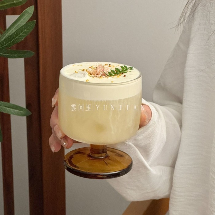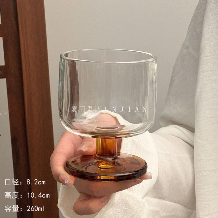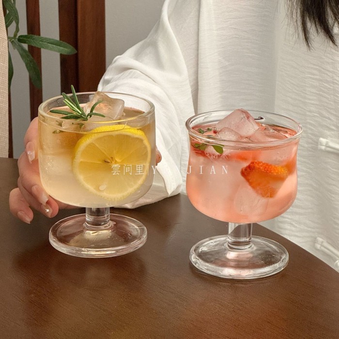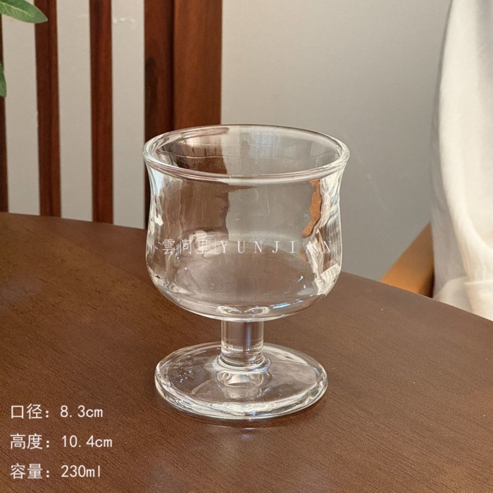 ถ้วยแก้วย้อนยุค 230มล ถ้วยเท้าสั้นถ้วยกาแฟใสเครื่องดื่มถ้วยน้ําผลไม้