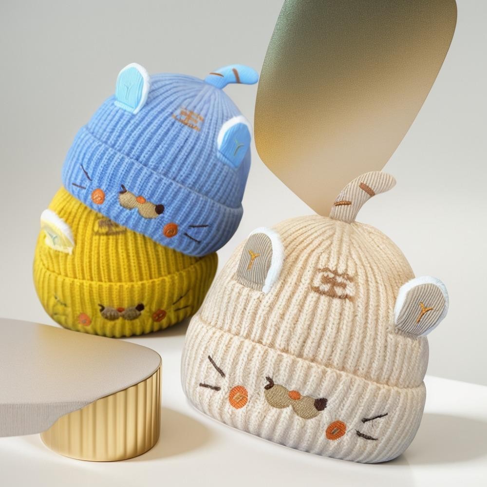 หมวกถักเด็กนุ่มน่ารัก สำหรับฤดูหนาวและใบไม้ร่วง กันลม แฟชั่นการ์ตูน