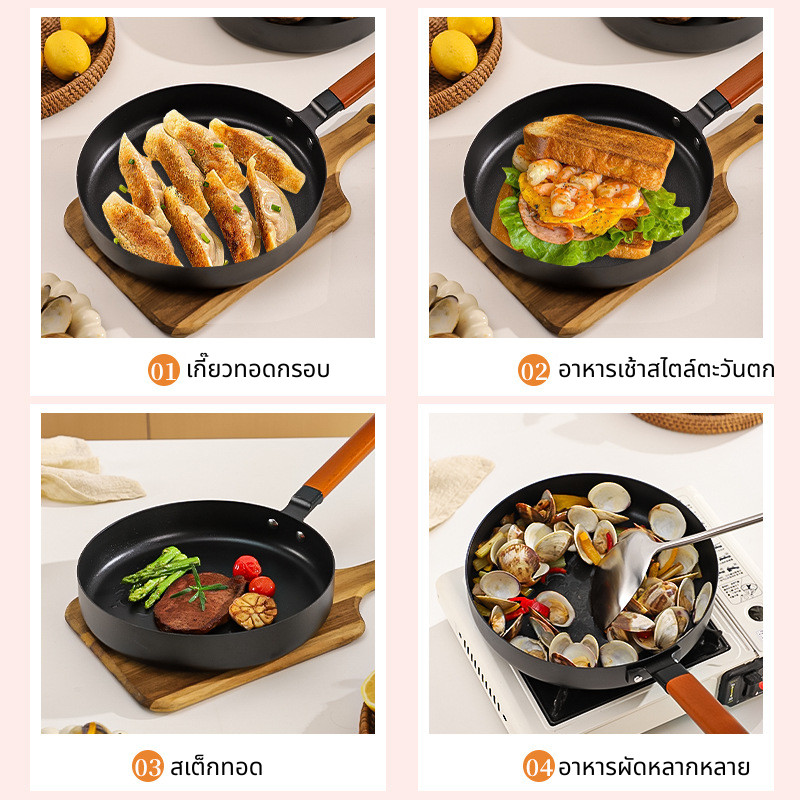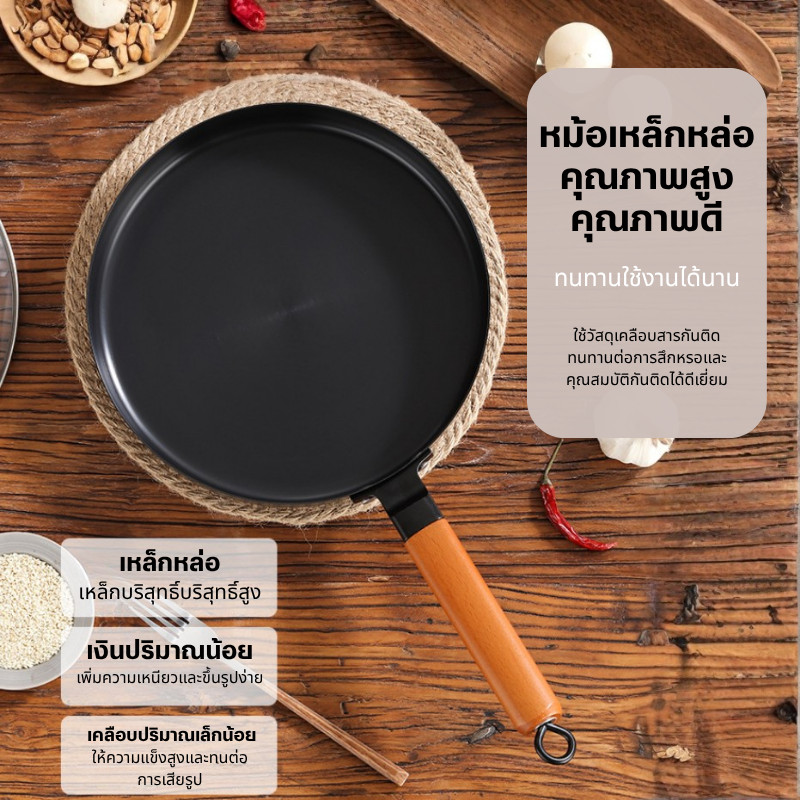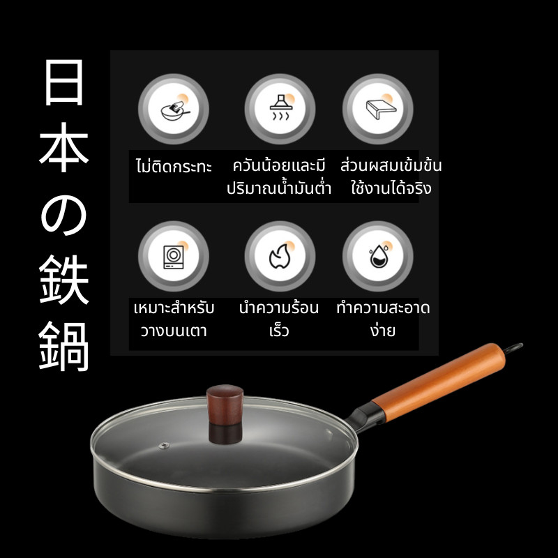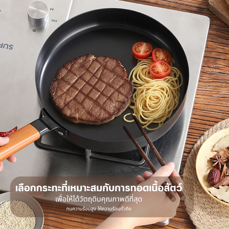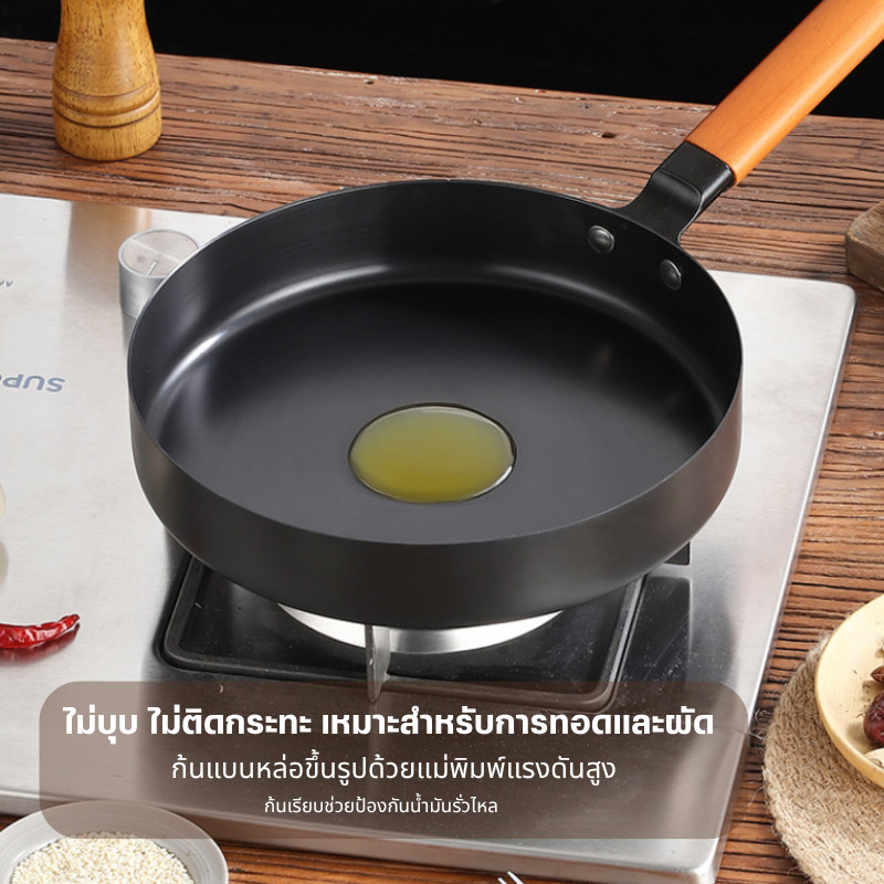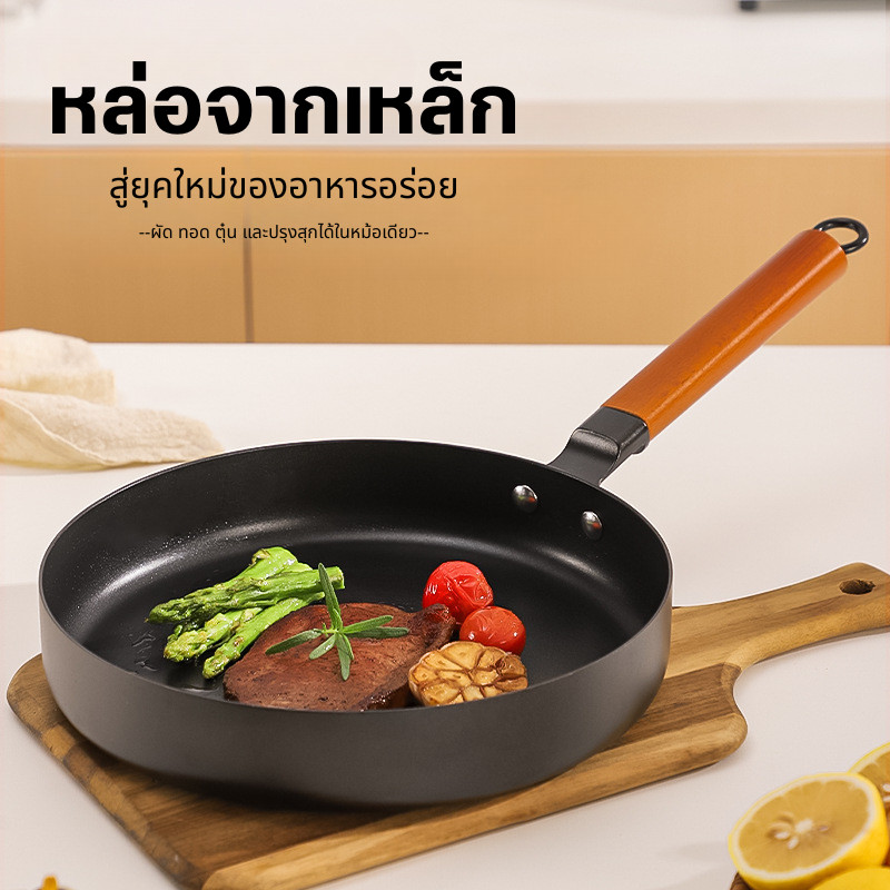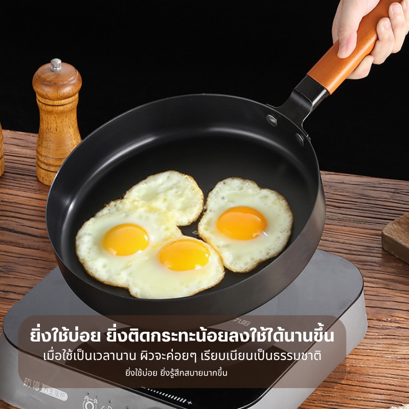 กระทะเหล็กเผา ย่างเนื้อ Yakini กระทะก้นแบน 26 ซม. ทรงญี่ปุ่น เผาพร้อมใช้ ร้อนเร็ว ผัดลื่น กระทะสเต็ก Z0191
