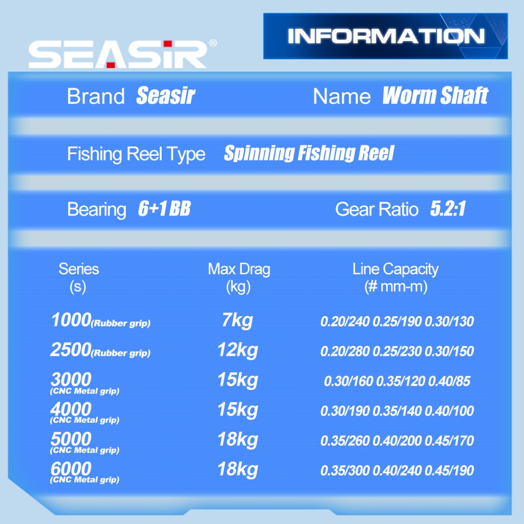 SEASIR Worm Shaft Spinning Reel ultra-dense ไขลาน Long Cast น้ําทะเลคาร์บอนเครื่องซักผ้าน้ําจืดน้ําเค็ม reel ตกปลา Coil