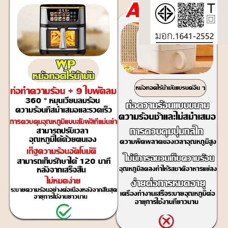 WP หม้อทอดไร้น้ำมัน รุ่น KQZG-04 ความจุ 12 ลิตร กำลังไฟ 2800 วัตต์ และ 8 โปรแกรมอัตโนมัติ Air fryer