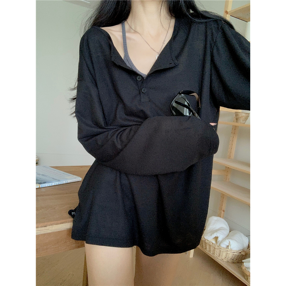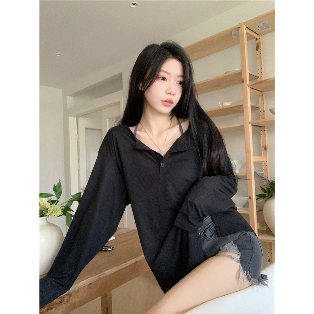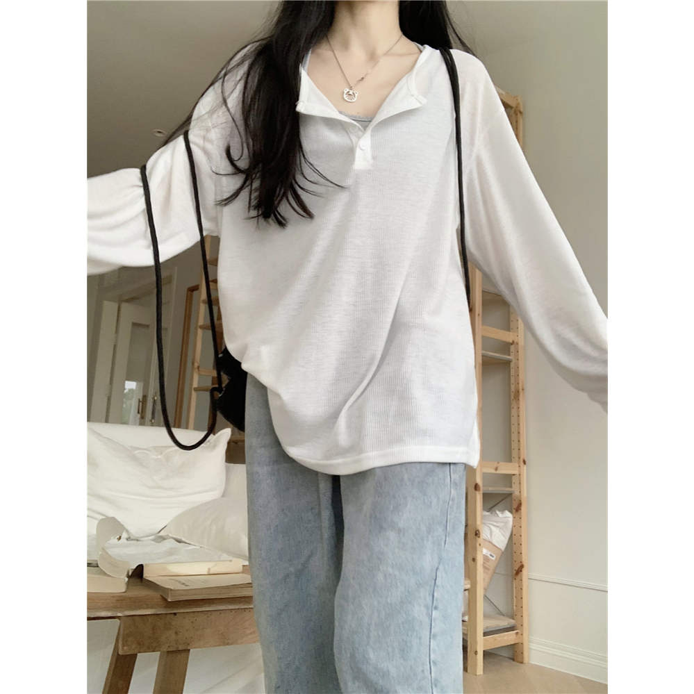 เสื้อยืดเเขนยาว เสื้อกันเเดดสาวอวบ เปิดไหล่ได้ ผ้านิ่มใส่สบาย สไตล์ลำลอง#2414