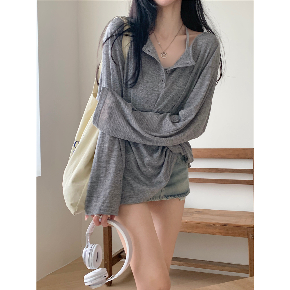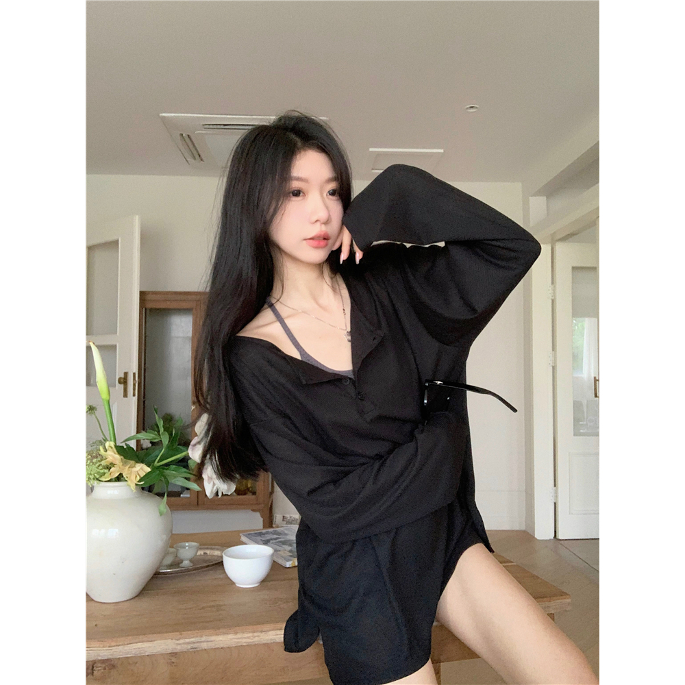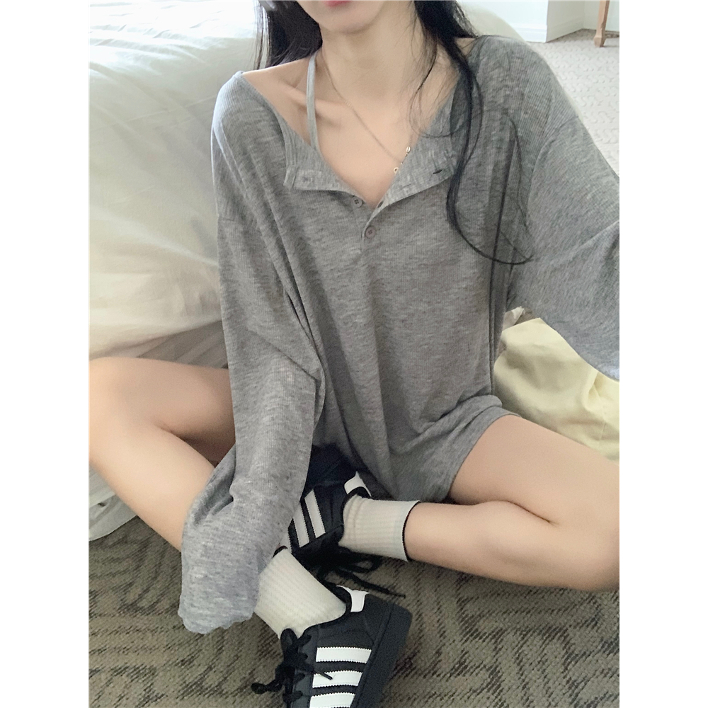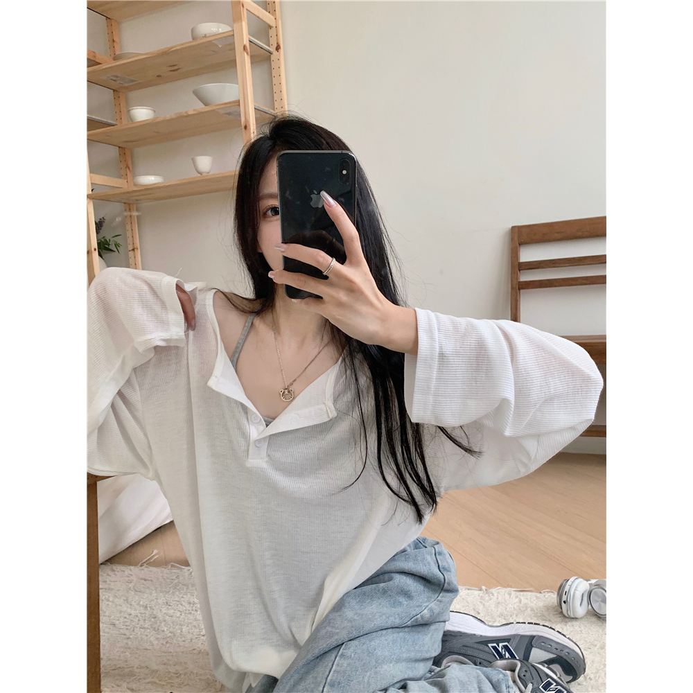เสื้อยืดเเขนยาว เสื้อกันเเดดสาวอวบ เปิดไหล่ได้ ผ้านิ่มใส่สบาย สไตล์ลำลอง#2414