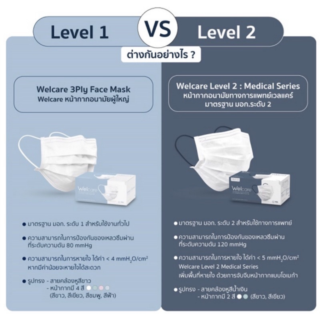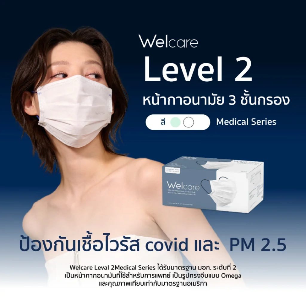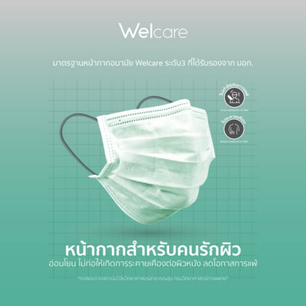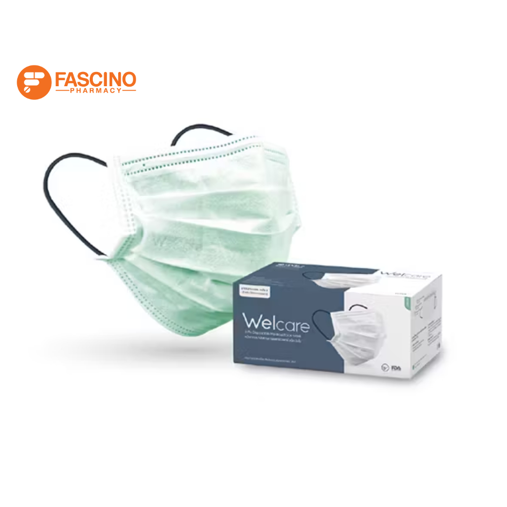 Welcare หน้ากากอนามัยเวลแคร์ หนา 3 ชั้น มาตราฐาน มอก. สีเขียว 1 กล่อง จำนวน 50 ชิ้น
