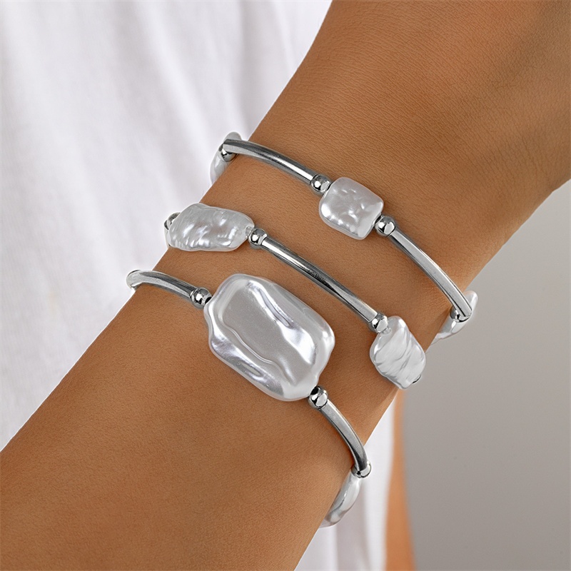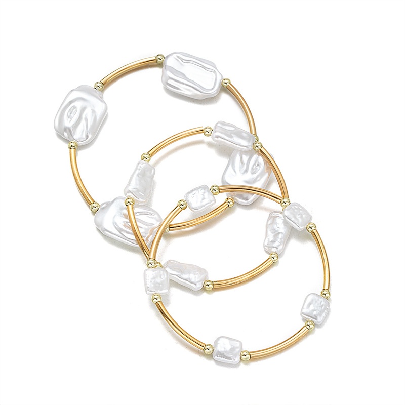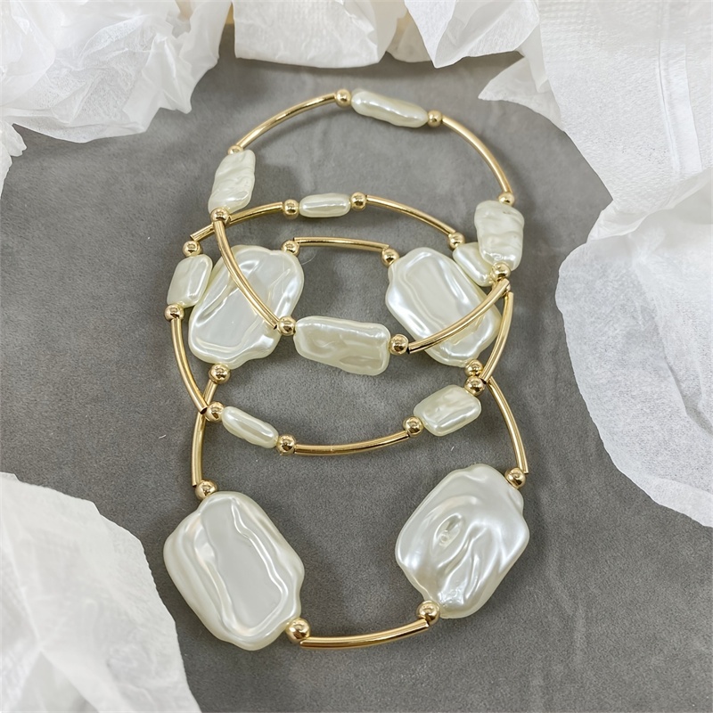 สร้อยข้อมือมุกบาร็อค ชุด 3 ชิ้น สไตล์ฝรั่งเศส สำหรับของขวัญวันหยุดและสวมใส่ทุกวัน