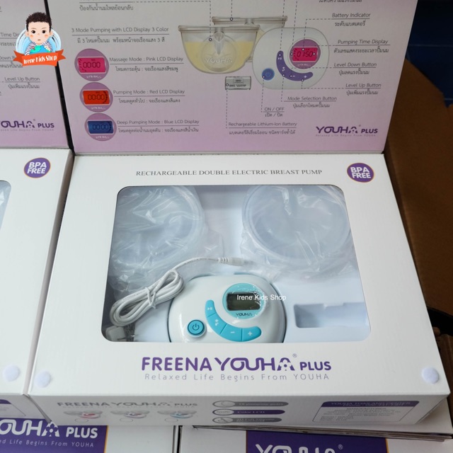 ??ใหม่ล่าสุด เครื่องปั๊มนมไฟฟ้า Freena Youha Plus รุ่น YH7001 มาพร้อมกรวยแฮนด์ฟรีซิลิโคนนิ่ม ปั๊มนมสะดวก ไม่ต้องจับ??