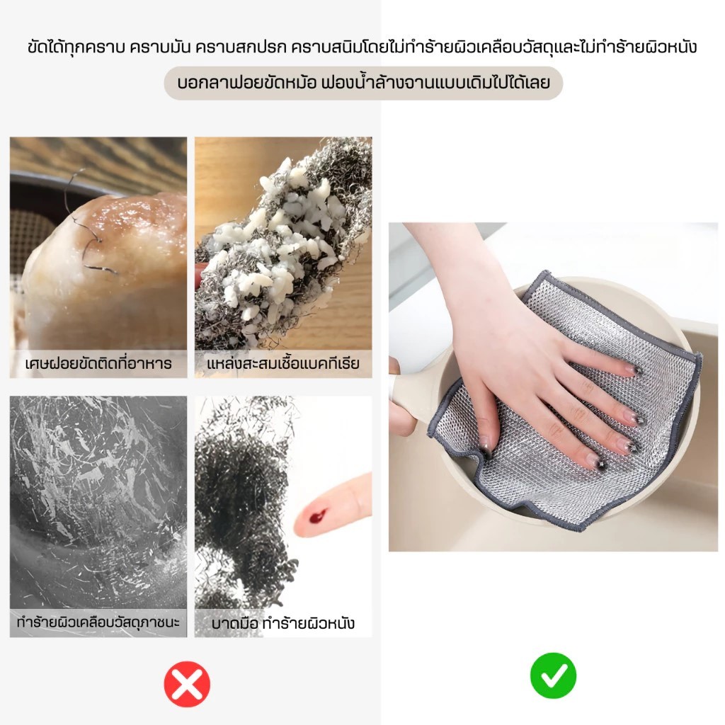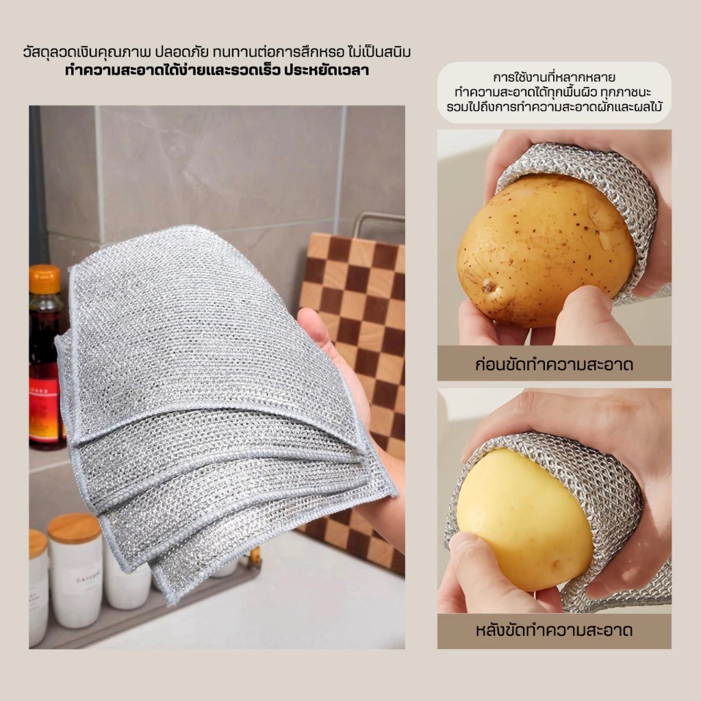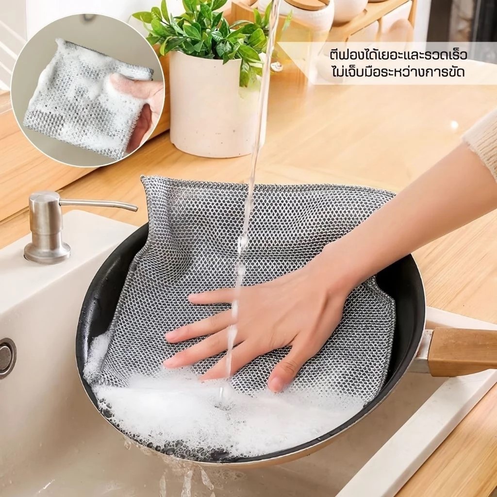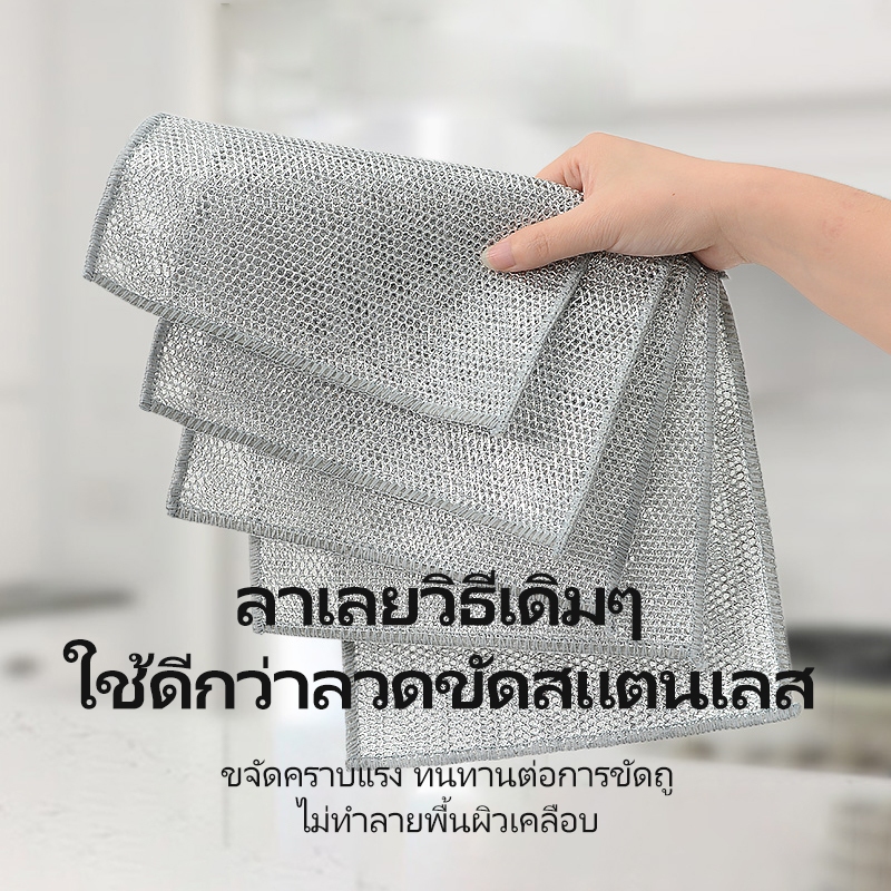 ผ้าล้างจานลวดเหล็กสองด้าน-การเปลี่ยนไม่เหนียวเหนอะหนะสําหรับห้องครัวกําจัดสิ่งสกปรกบนแผ่น
