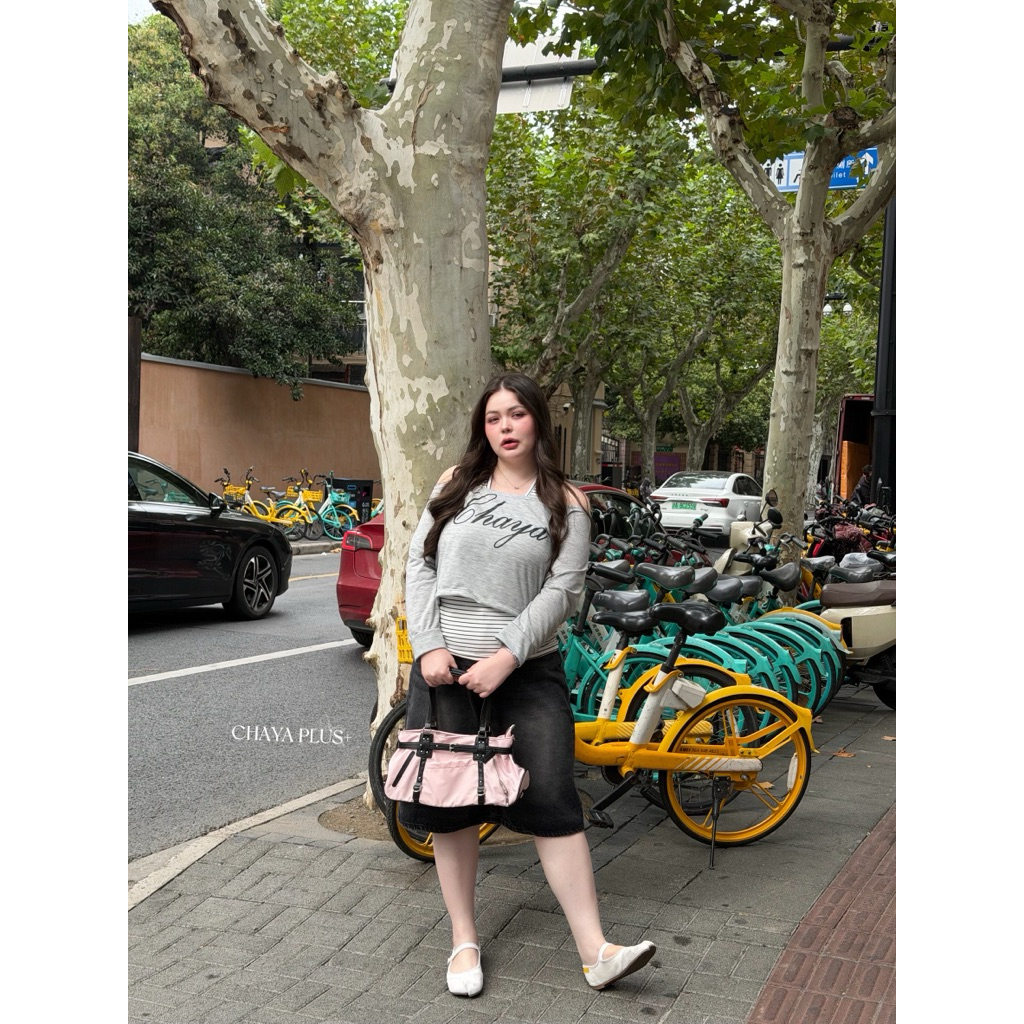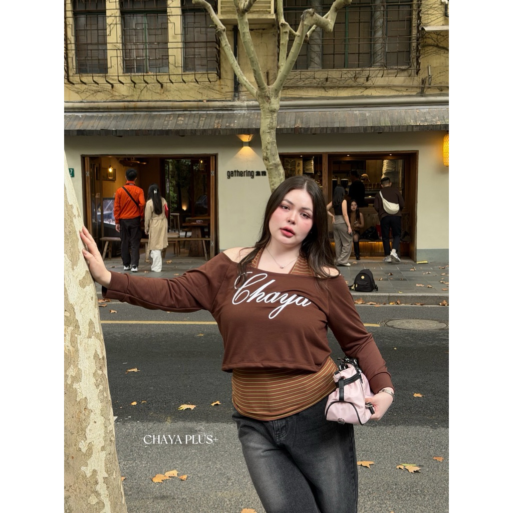 (ถูกสุด/ส่งด่วน!⚡️) A112(CY) เสื้อกล้ามแต่งคล้องคอ+เสื้อปาดไหล่งานสกรีน สาวอวบไซส์ใหญ่