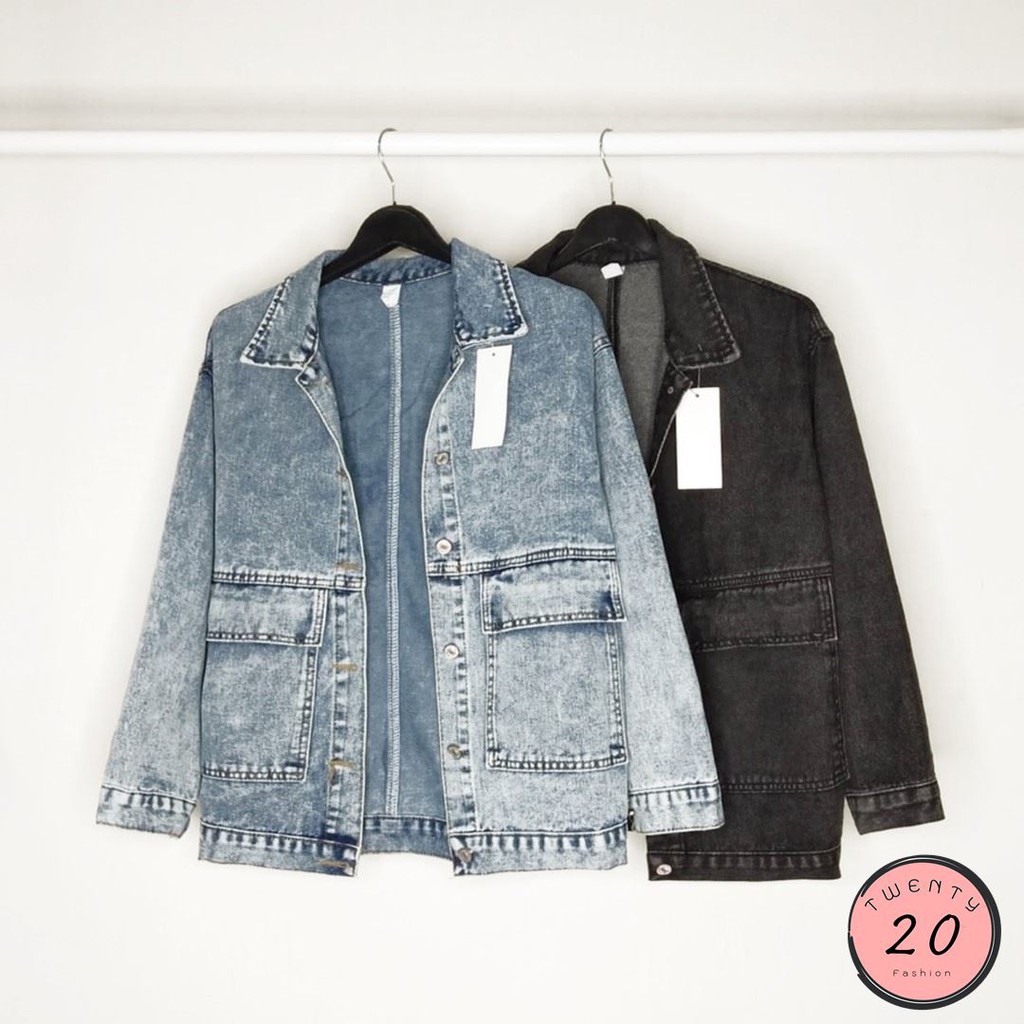 ? New2023 ? เสื้อแจ๊คเก็ตยีนส์ กระเป๋าใหญ่ 2 สี