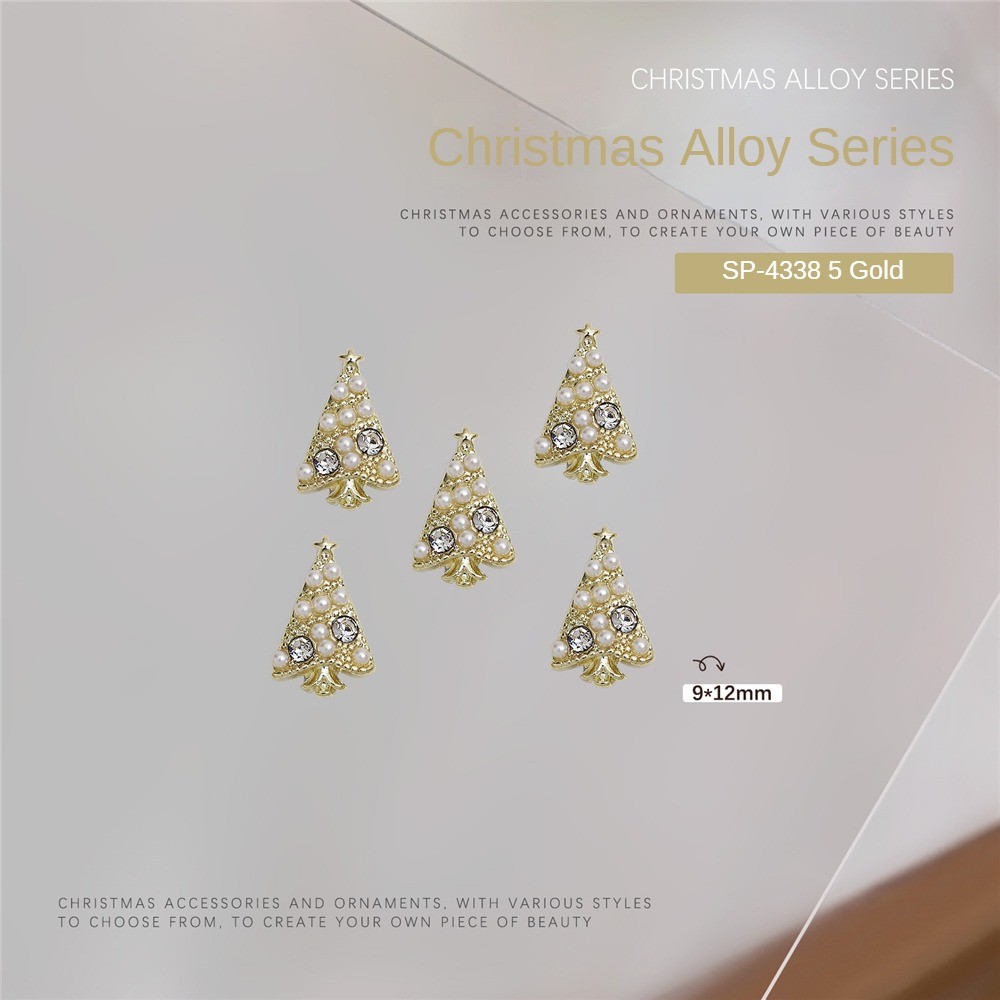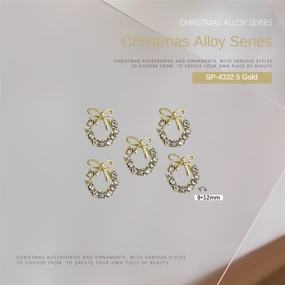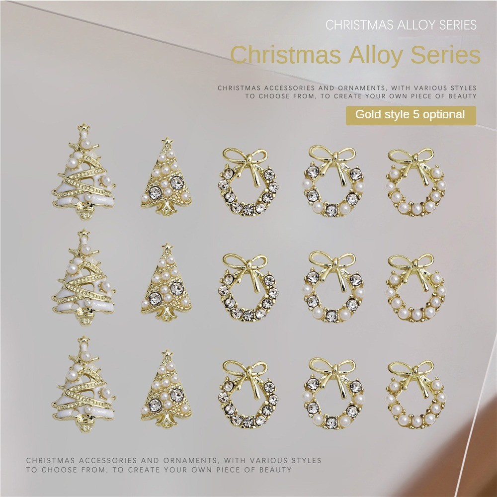 เครื่องประดับตกแต่งเล็บคริสต์มาส 5 ชิ้น ตกแต่งเล็บคริสต์มาส อะไหล่ติดเล็บสุดสร้างสรรค์พร้อมเพชรเทียมโลหะและกลิตเตอร์ติดทนนาน COD