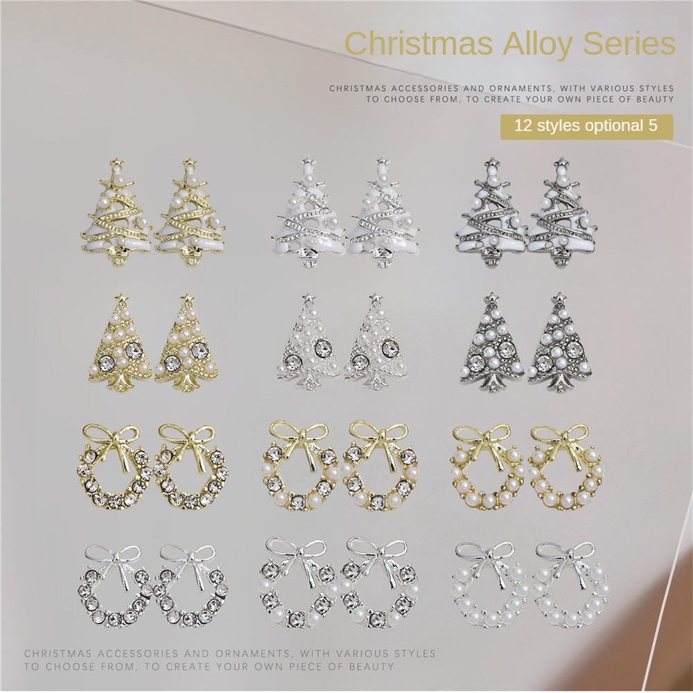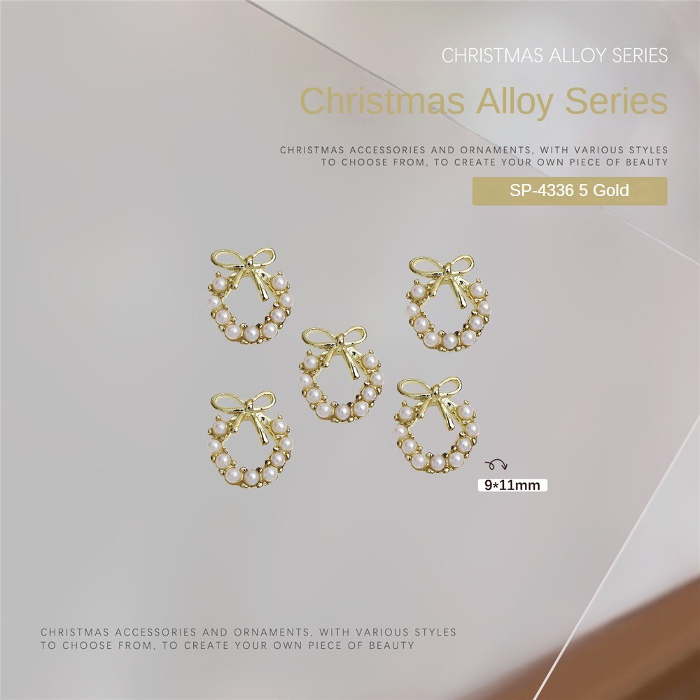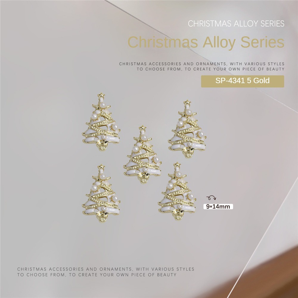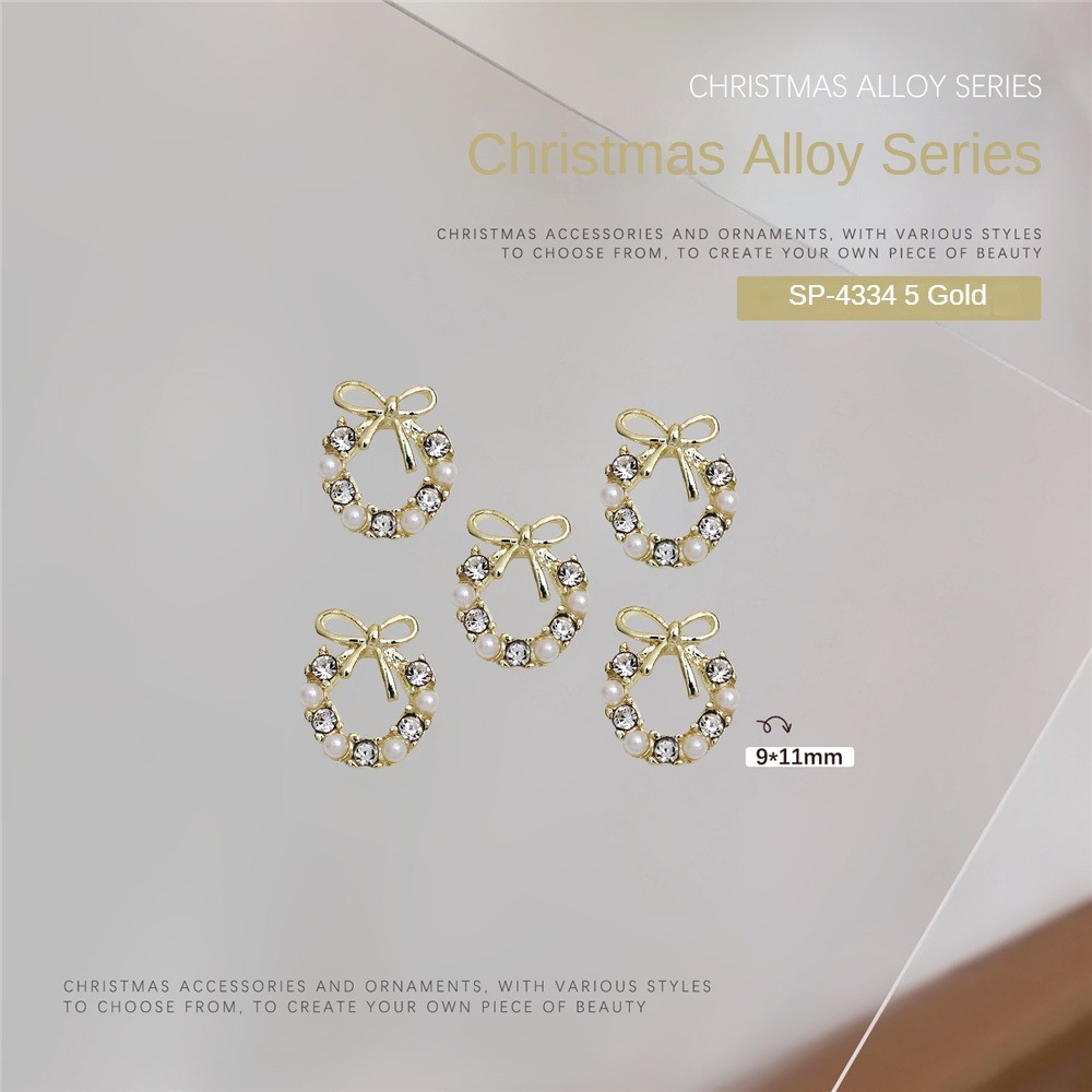 เครื่องประดับตกแต่งเล็บคริสต์มาส 5 ชิ้น ตกแต่งเล็บคริสต์มาส อะไหล่ติดเล็บสุดสร้างสรรค์พร้อมเพชรเทียมโลหะและกลิตเตอร์ติดทนนาน COD