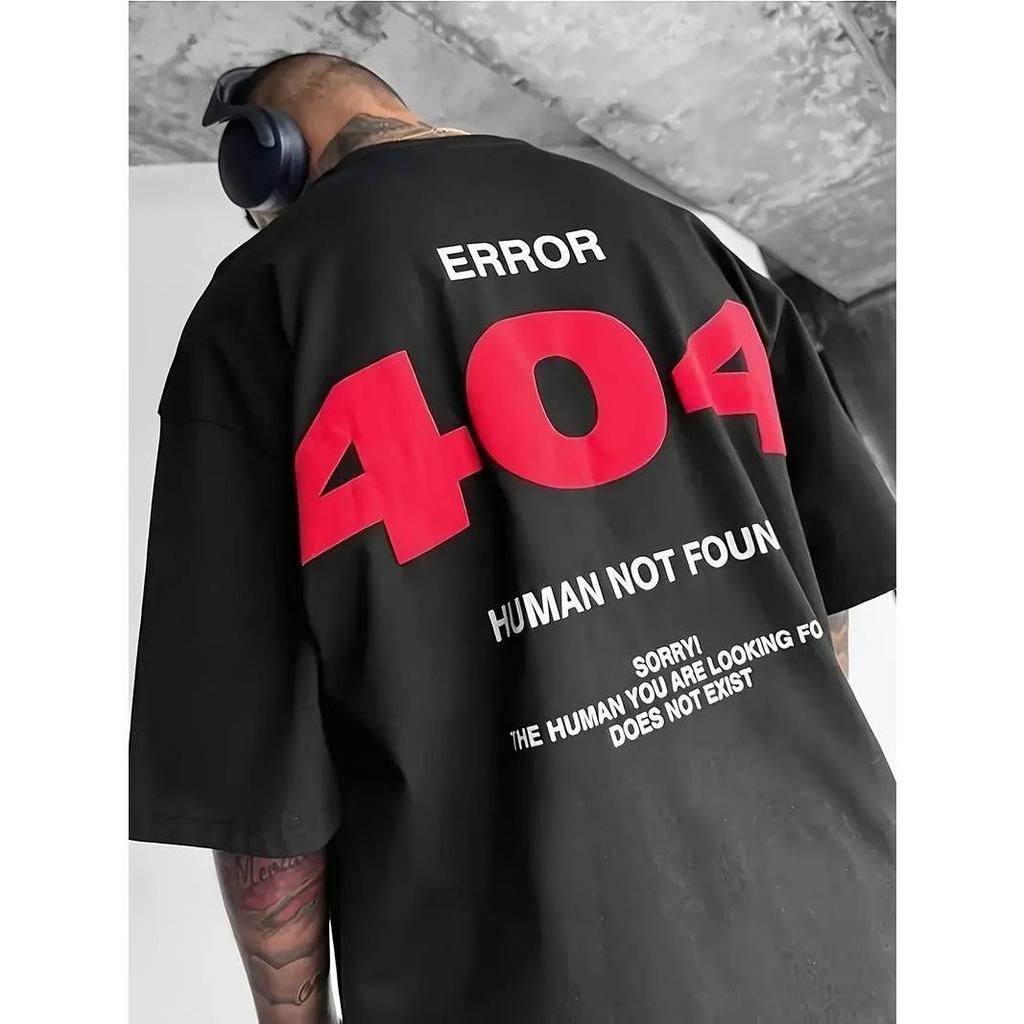 ERROR 404 Human Not Found” Fun Internet Meme พิมพ์หลายสี Loose Street Trend Short – Sleeve T – Shirt Series