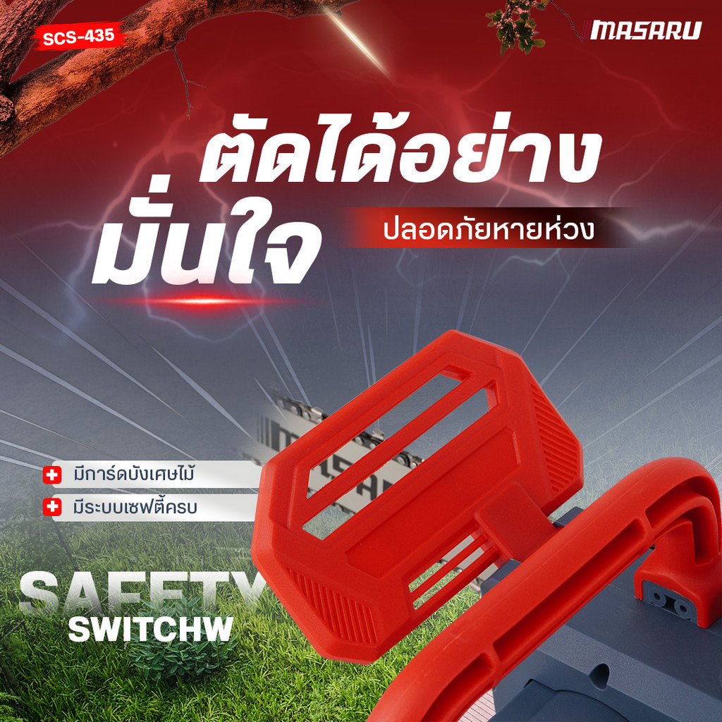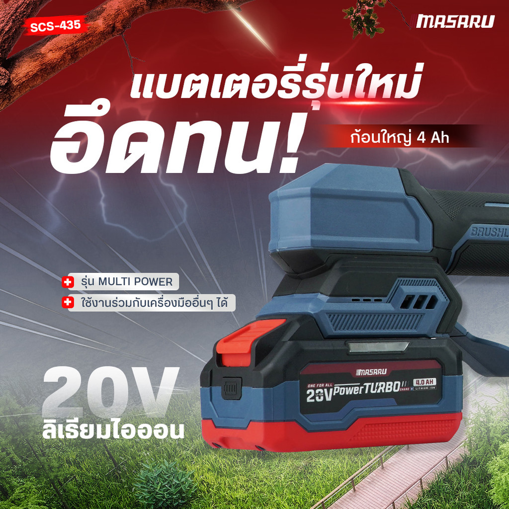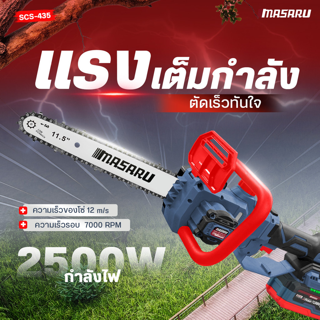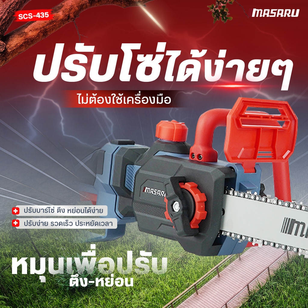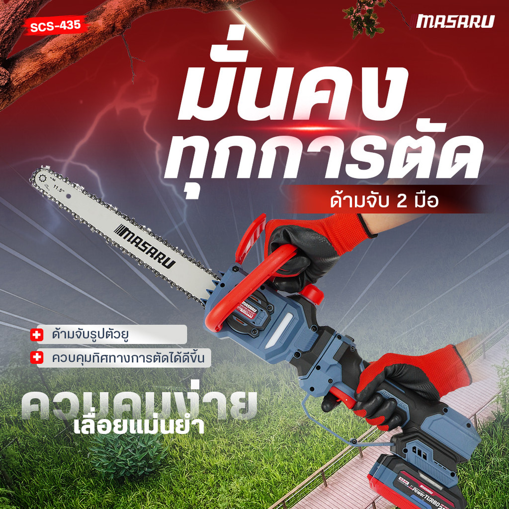 เลื่อยโซ่ไร้สาย Masaru 11.5 นิ้ว 20V SCS-435 ปรับยืดได้ 70–100 เลื่อยตัดไม้แบตเตอรี่ Brushless
