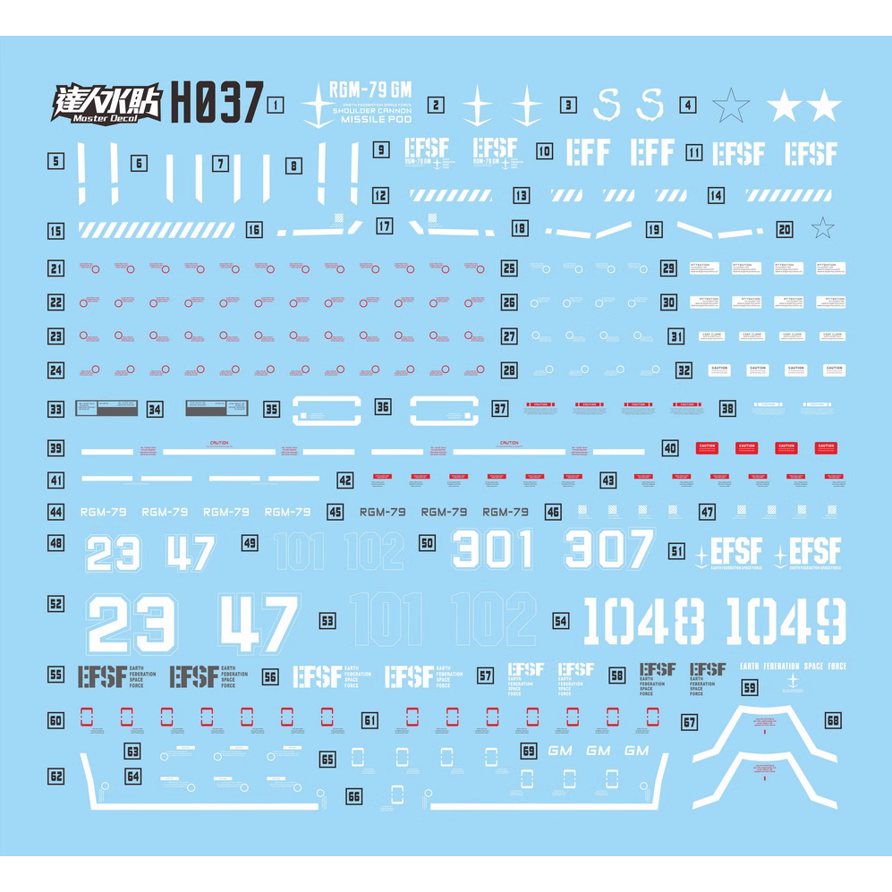 MASTER H037 HG 1/144 RGM-79 GM (Shoulder Cannon) Water Slide Decal ไม่ใช่สติ๊กเกอร์ (ไม่รวมชุดหรือรุ่น)