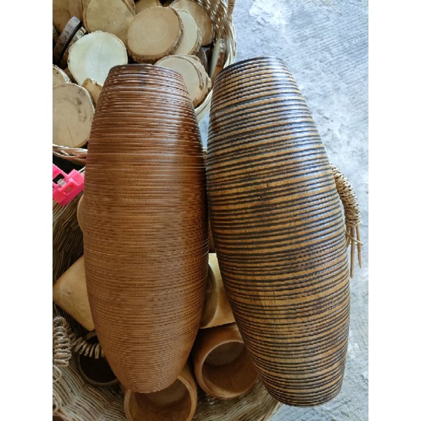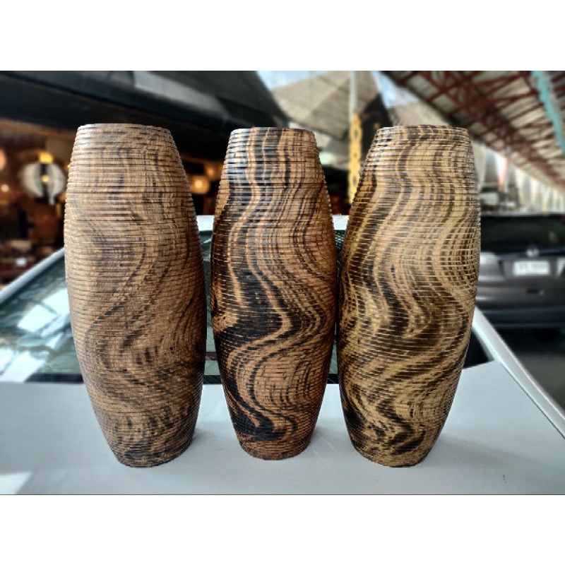 แจกันไม้มะม่วงแท้ ขัดเคลือบผิวอย่างดี งานสวย ทรงสูง วงรี