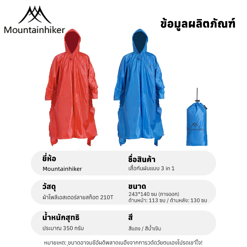 พร้อมส่ง⚡เสื้อกันฝน3-in-1 Mountainhiker อเนกประสงค์ สําหรับการตั้งแคมป์กลางแจ้งเดินป่ารอบปีนเขา
