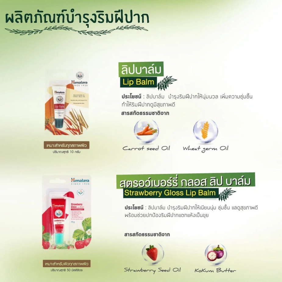 ผลิตภัณฑ์บำรุงริมฝีปาก ด้วยประสิทธิภาพจากสมุนไพรธรรมชาติจาก Strawberry Seed Oil และ Kokum Butter ช่วยบำรุงริมฝีปากให้เนียนนุ่ม ชุ่มชื้น แลดูสุขภาพดี พร้อมช่วยให้ริมฝีปากดูสดใส ไม่แตกแห้ง