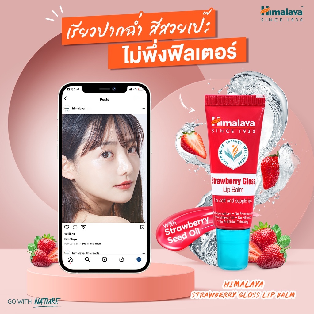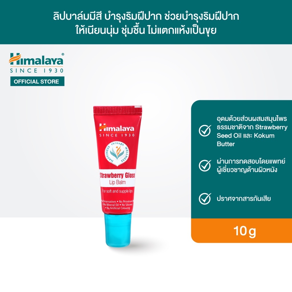 [แพ็คคู่] หิมาลายา ลิปบาล์มมีสี พร้อมบำรุงริมฝีปาก เนียนนุ่ม ไม่แห้งลอก 10 ก. Himalaya Strawberry Gloss Lip Balm 10g