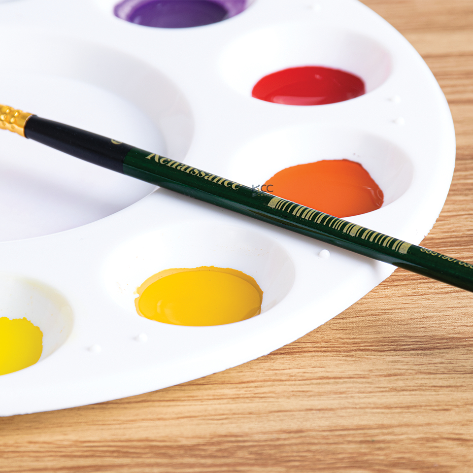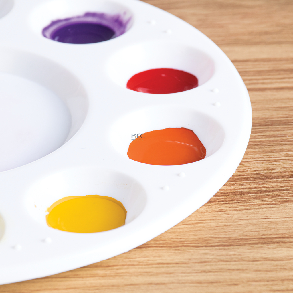 - มี 1 ช่องกลมขนาดใหญ่สำหรับการผสมสี และ 10 ช่องกลมขนาดเล็กรอบนอกสำหรับการบีบสี หรือผสมสีในปริมาณที่น้อย