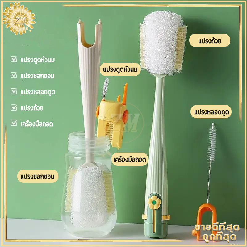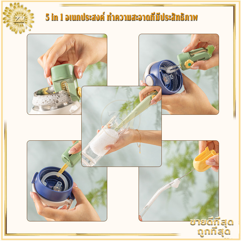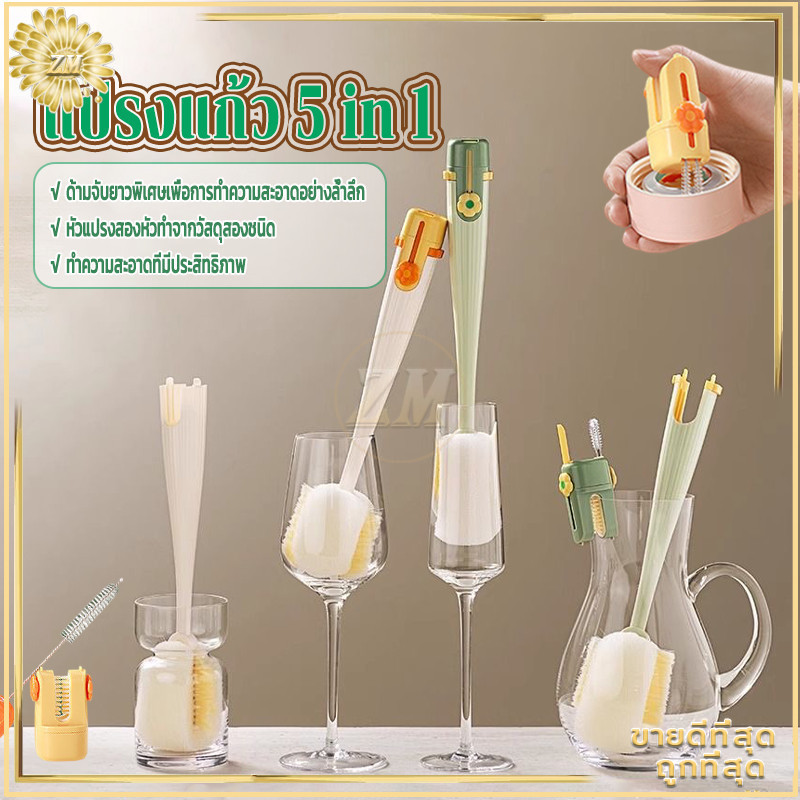แปรงแก้ว5 in 1 แปรงขวด แปรงล้างแก้วน้ำ มัลติฟังก์ชัน:แปรงดูดหัวนม,แปรงซอกซอน,แปรงหลอดดูด,แปรงถ้วย,แปรงล้างขวด รุ่นใหม่ปี