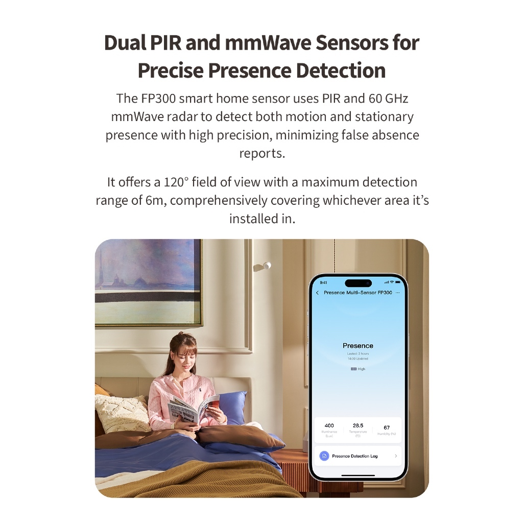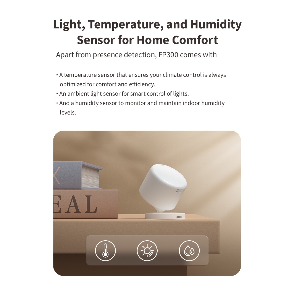 Presence Sensor FP300 เซ็นเซอร์อัจฉริยะ 5-in-1 ขับเคลื่อนด้วย AI พร้อมระบบตรวจจับแบบคู่ (PIR + mmWave) รองรับ Thread/Zigbee