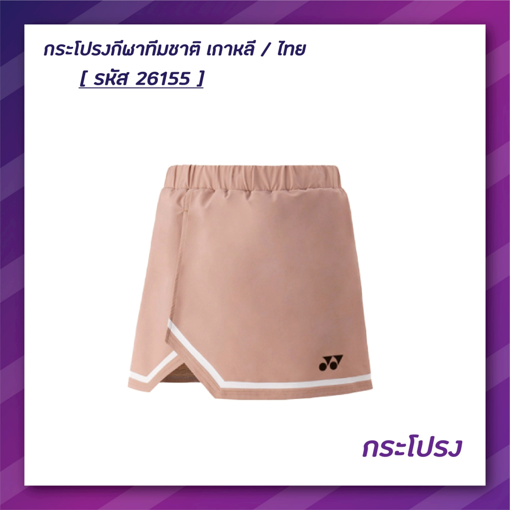 ชุดกีฬา Yonex รหัส10637สีม่วง/น้ำตาลขาว กางเกงสีชมพูน้ำตาล และกระโปรงสีชมพูกระปิ