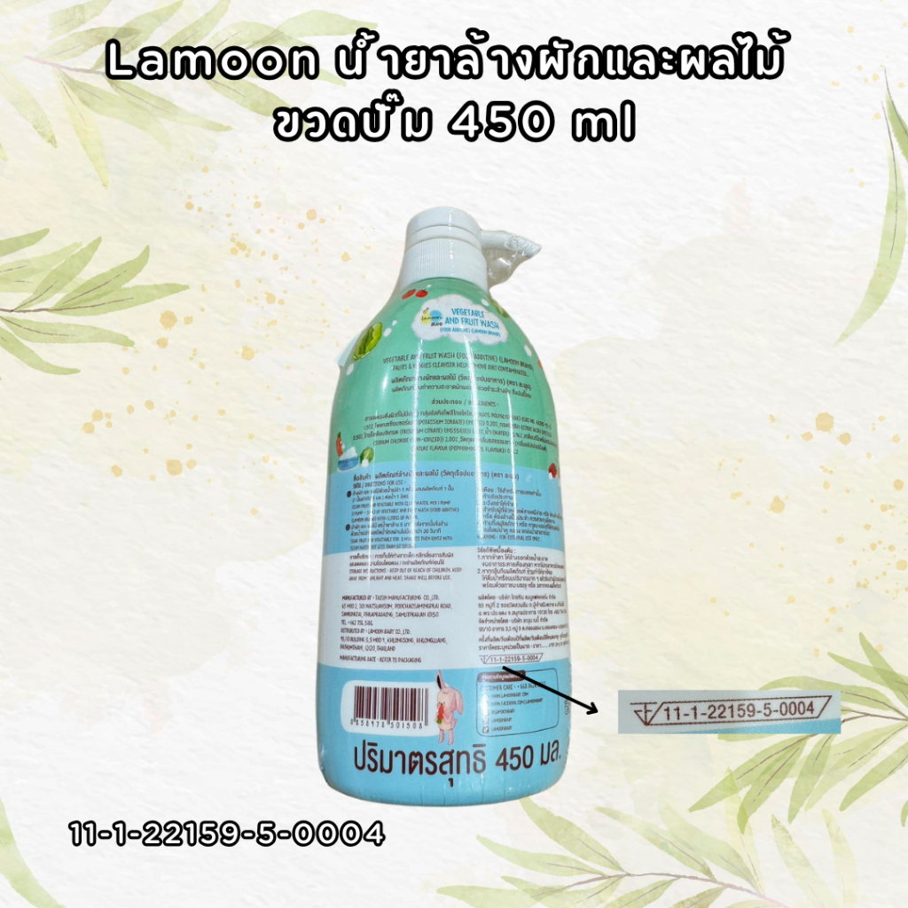 สูตรใหม่! ละมุน Lamoon น้ำยาล้างผักและผลไม้ ออร์แกนิค ละมุนเบบี้ ขวดปั๊ม 450ml ถุงรีฟิล 400ml