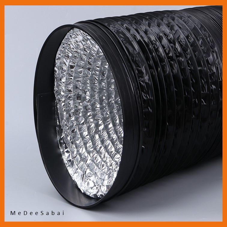 ท่อฟลอยล์เคลือบพลาสติก pvc สีดำ ขนาด 6 นิ้วหรือ 15 เซนติเมตร ยาวยืด 4 เมตร ใช้กับ แอร์เคลื่อนที่ ดูดควันห้องครัว ดูดไอเสีย ดูดอากาศ ระบายอากาส ยืด หยุ่นได้ดี ยืดหดทรงตัวดี หนา ทนทาน ใช้งานได้นาน