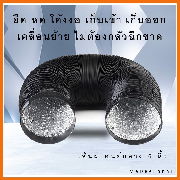 ท่อลมระบายอากาศฟอยล์เคลือบพีวีซี 6 นิ้ว ยาว 4 ม. เสริมแอร์เคลื่อนที่ ท่อไอเสีย ดูดควัน ลมร้อนแอร์มุ้ง แฟรกอ่อน