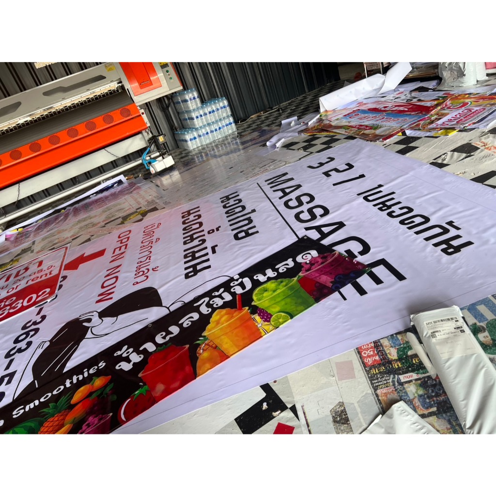 ป้ายไวนิล ป้ายติดหน้าร้าน ออกแบบฟรี พร้อมเจาะรูตาไก่