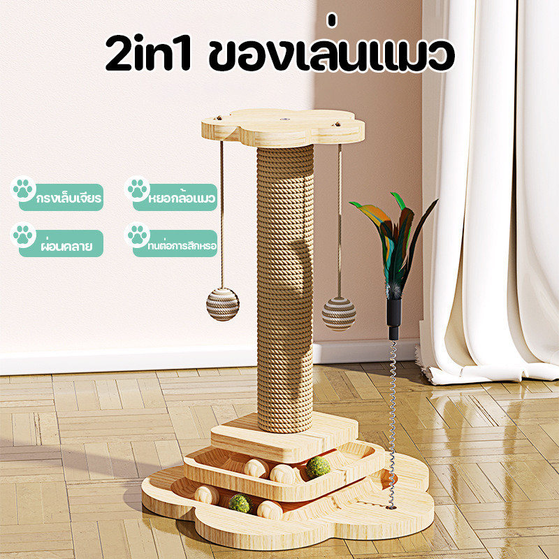 ที่ฝนเล็บแมว2 in 1ลับเล็บแมว ของเล่นแมว เสาลับเล็บแมว ถอดเปลี่ยนได้ ทนต่อการสึกหรอ วัสดุไม้เนื้อแข็ง