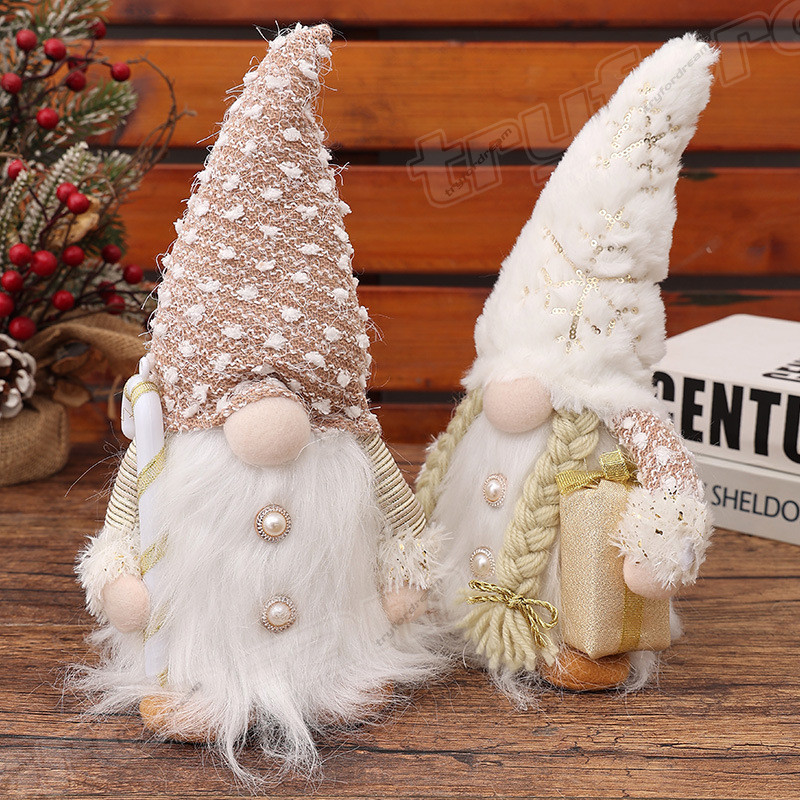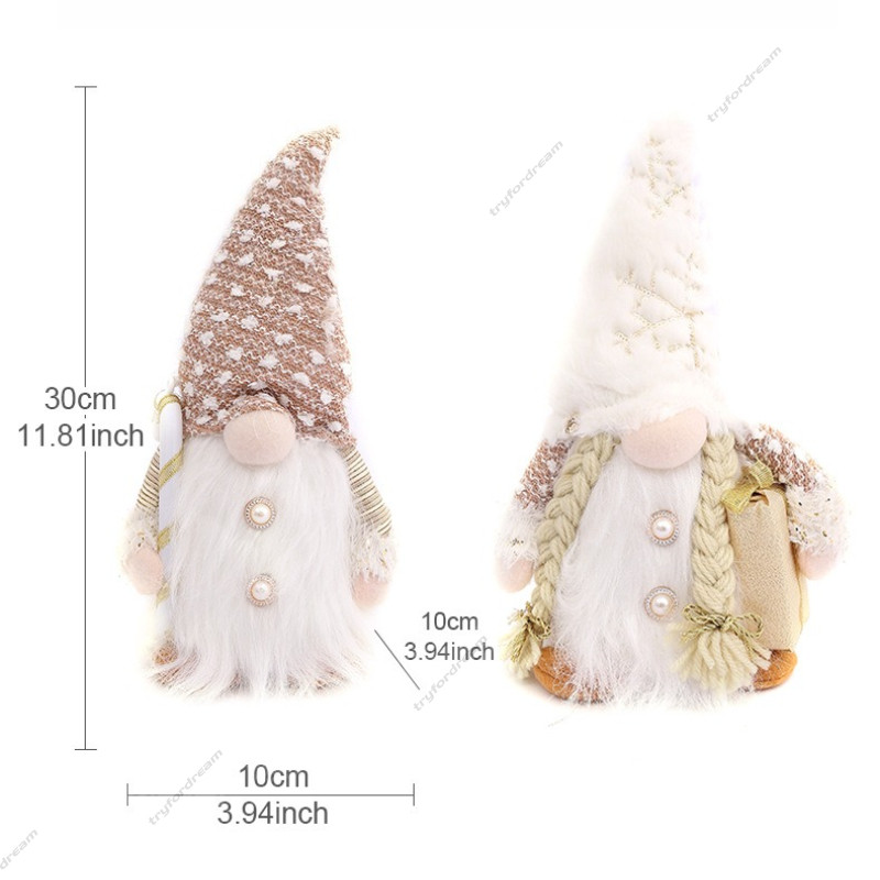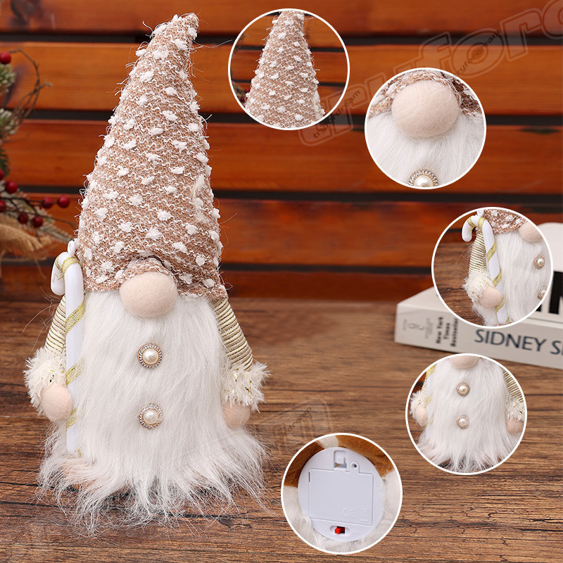 ตุ๊กตากโนมคริสต์มาสเรืองแสง 2 ตัว – ตุ๊กตาขนปุยแคปยาว 30CM ไฟ LED – ของตกแต่งบ้านปาร์ตี้คริสต์มาส