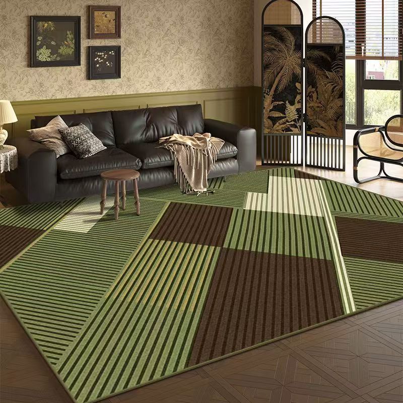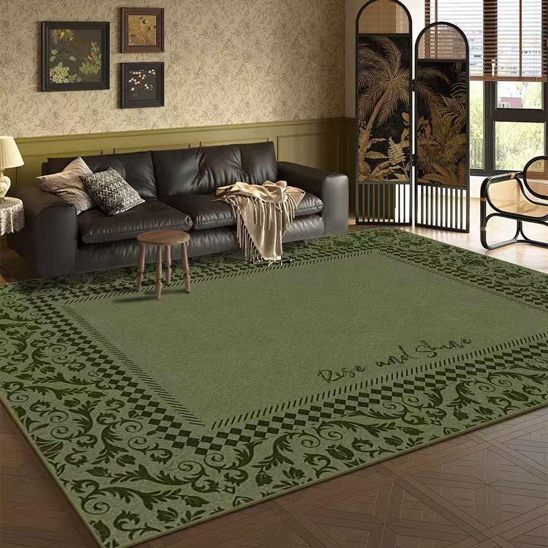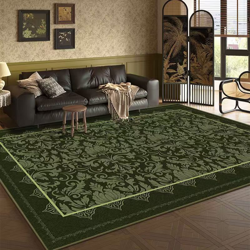 พรมสีเขียวสไตล์วินเทจ พรมห้องนั่งเล่นโทนหรูหรา หนานุ่ม ทนทาน เพิ่มความมีระดับให้บ้านของคุณ