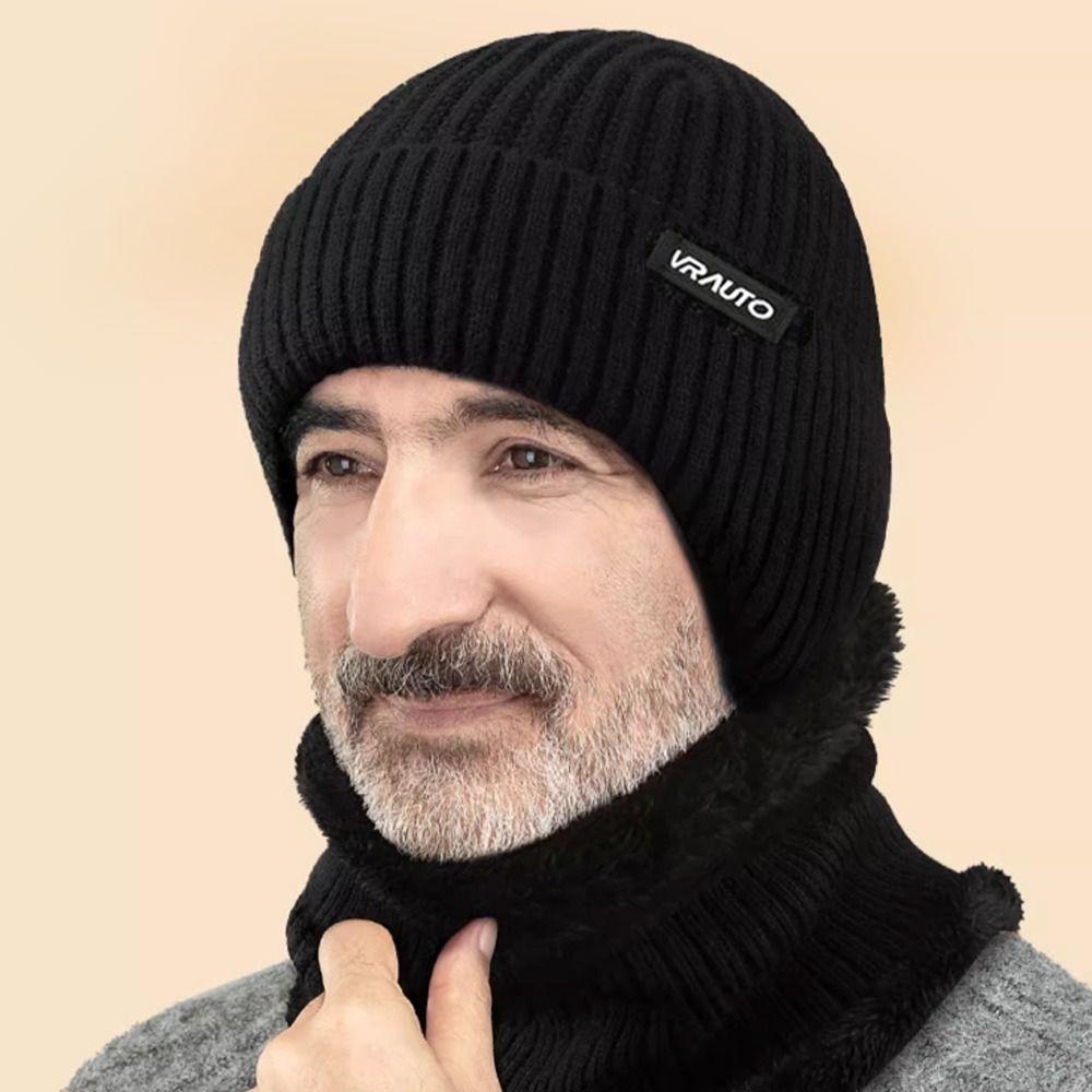 หมวกบีนนี่หนานุ่มผู้ชาย ทำจากขนแกะ อุ่นและป้องกันลมในฤดูหนาว