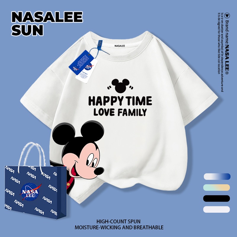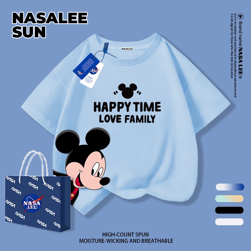 【จัดส่งทันทีวันเดียวกัน】เสื้อยืดแขนสั้น NASA สำหรับเด็ก ทำจากผ้าฝ้าย รับบรรยากาศปีใหม่ ลวดลายมิกกี้เมาส์ เหมาะสำหรับเด็กอายุ 3-16 ปี (ทั้งชายและหญิง)