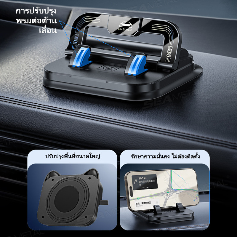 SEAMETAL ที่วางโทรศัพท์ในรถยนต์ แผ่นแดชบอร์ดวางโทรศัพท์ในรถยนต์ ที่วางโทรศัพท์มือถือ หมุนได้360