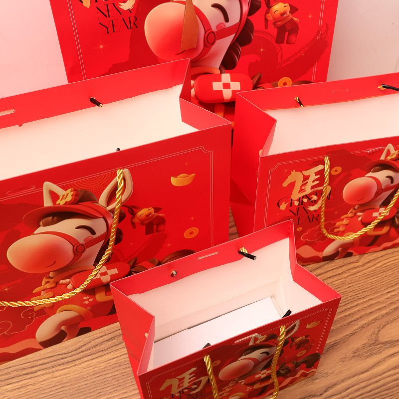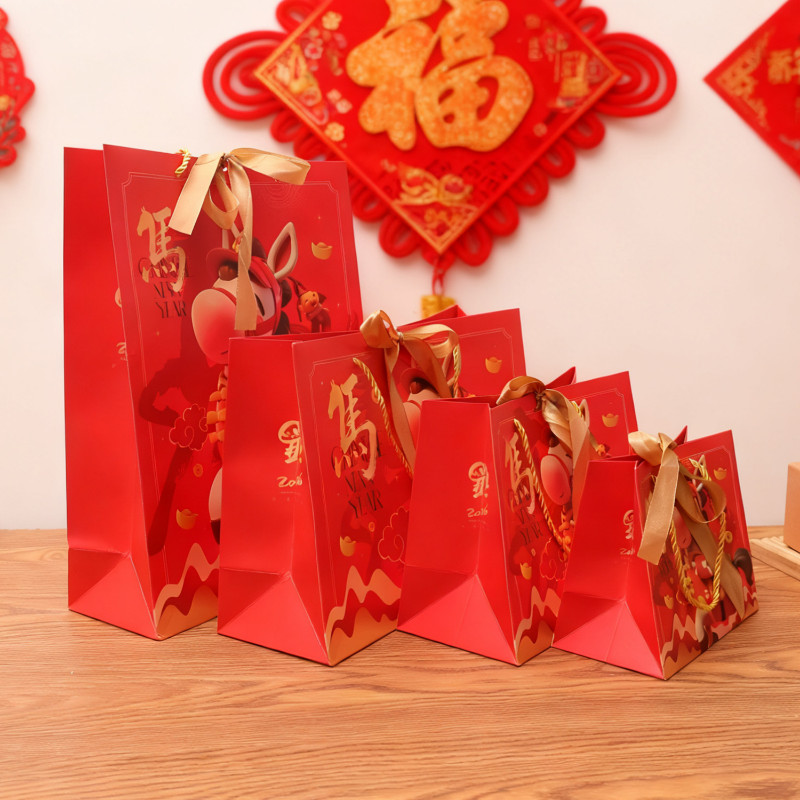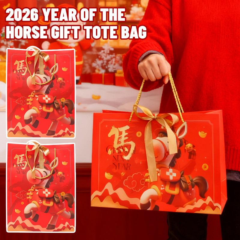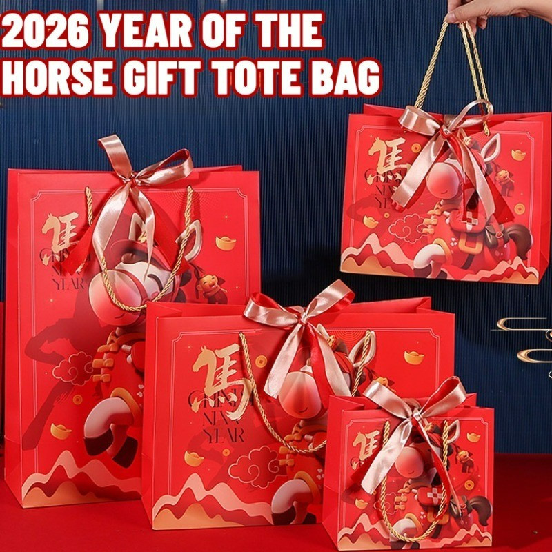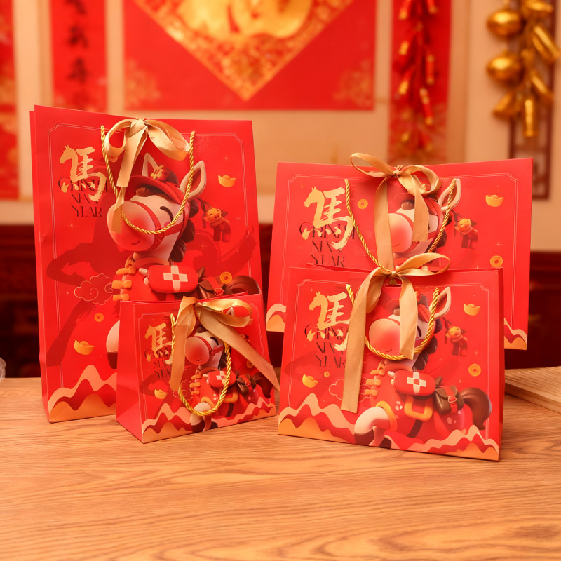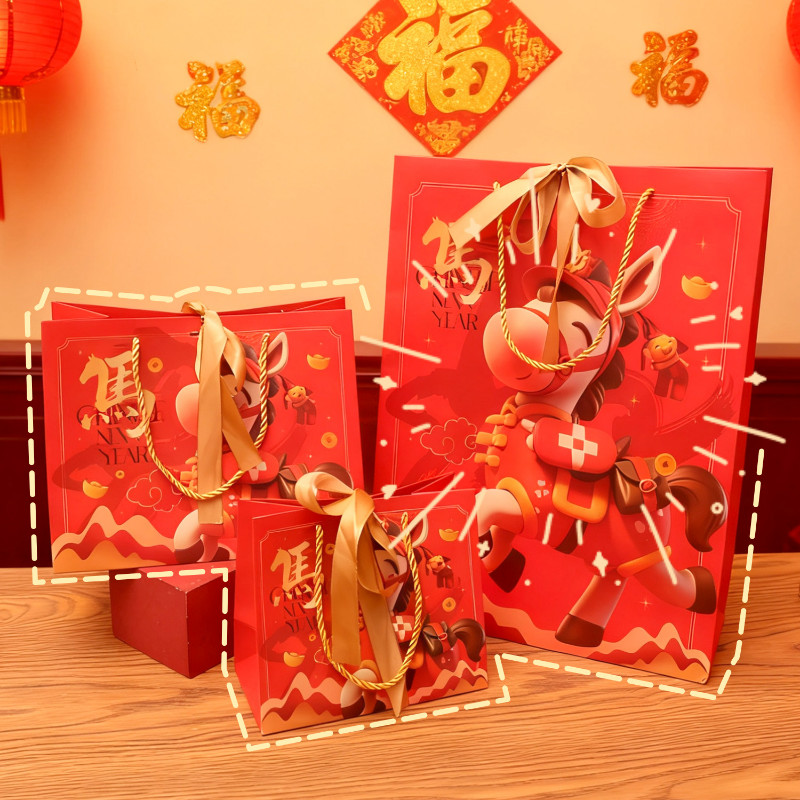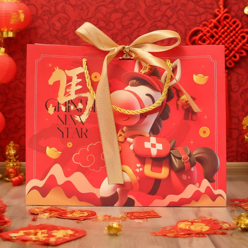 1/2ชิ้น2026ถุงของขวัญตรุษจีน-ถุงเก็บ-ถุงกระดาษความจุขนาดใหญ่-ถุงบรรจุภัณฑ์ลายม้าราศี-การ์ตูนม้ากระเป๋าถือ-ความสุขเทศกาลฤดูใบไม้ผลิตกแต่ง