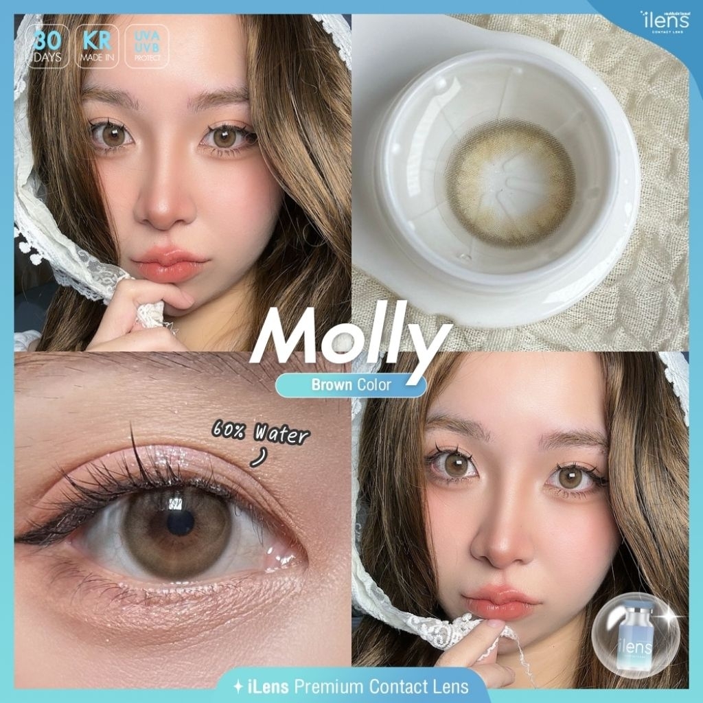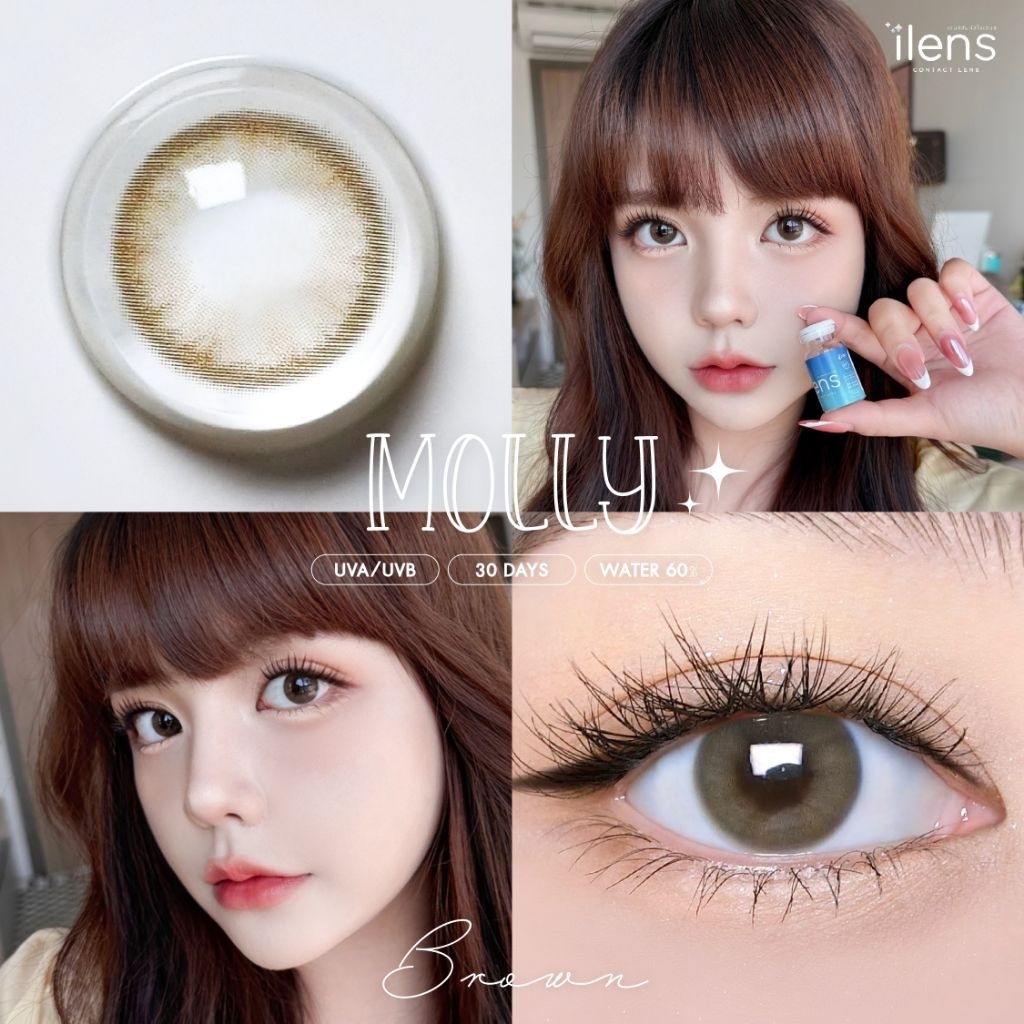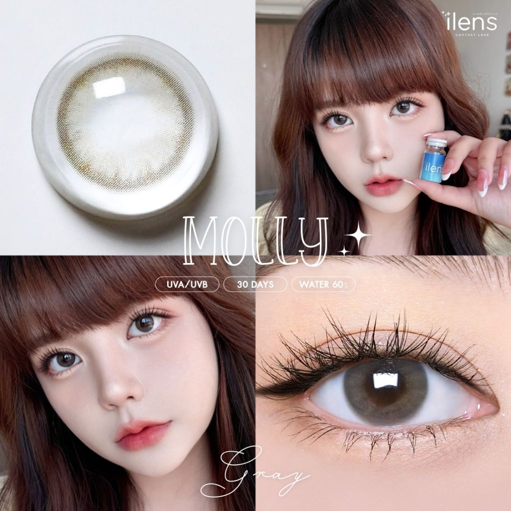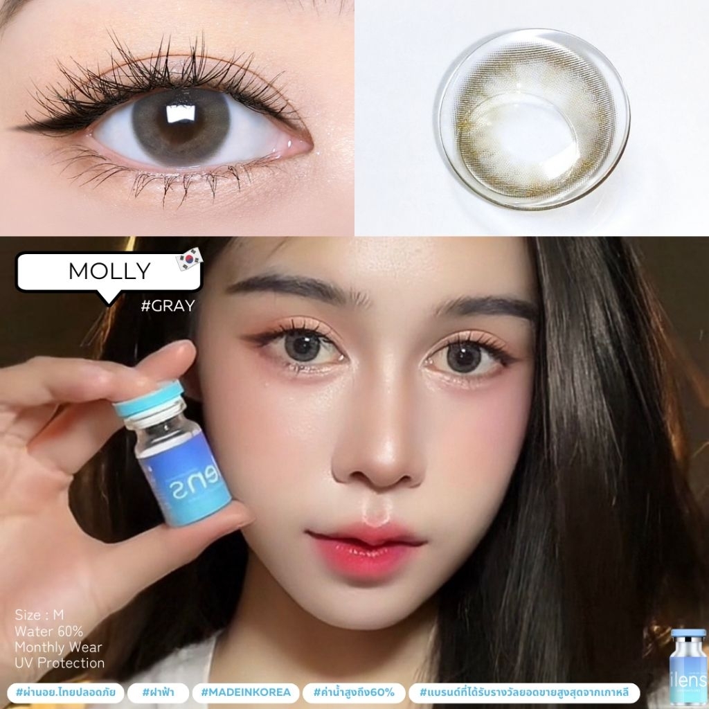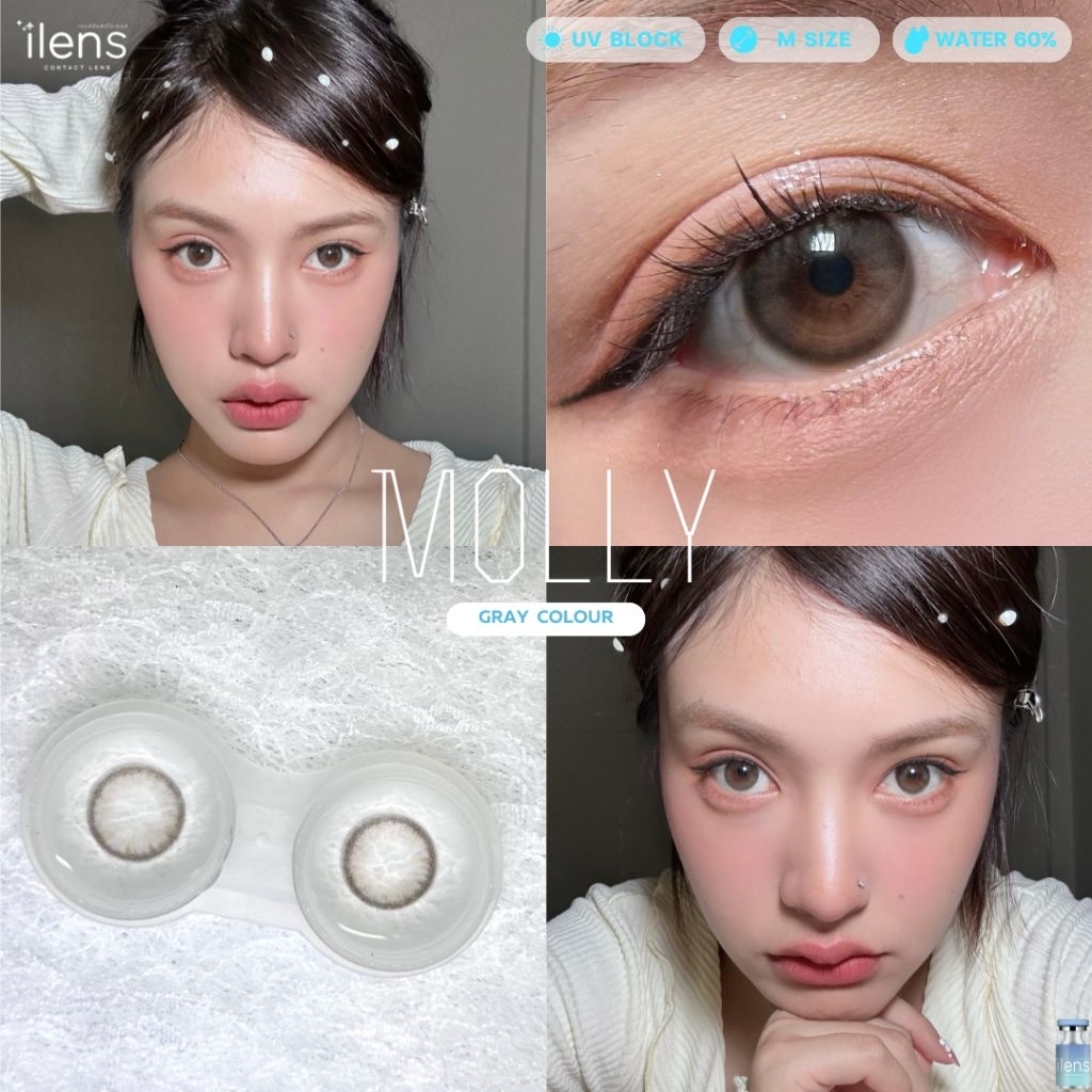 คอนแทคเลนส์ มี อย.ไทย ขนาด M รุ่น Molly มีสีเทา/ตาล Gray/Brown มีค่าสายตา (0.00)-(-10.00) รายเดือน