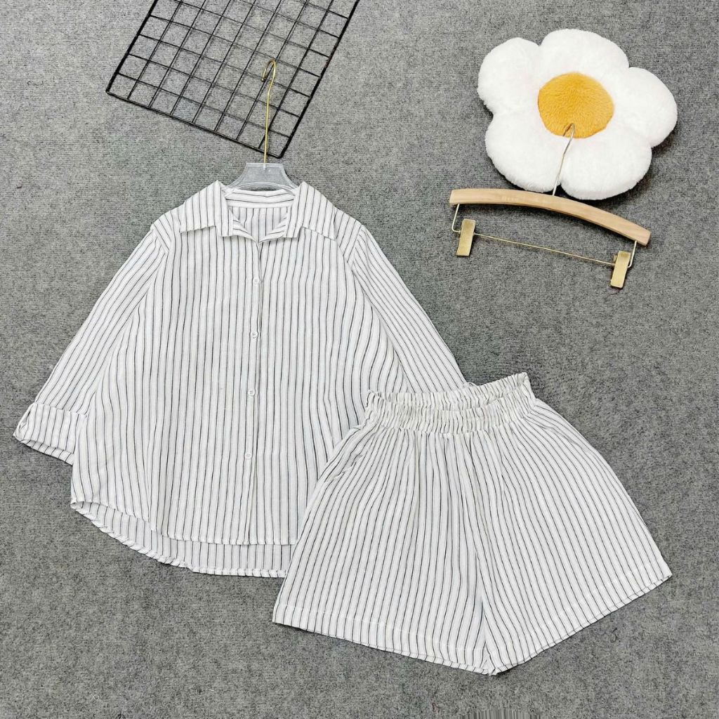 ชุดตัวใหญ่พร้อมลายทางและกางเกงขาสั้นผ้าลินินสำหรับเยาวชน - SET865