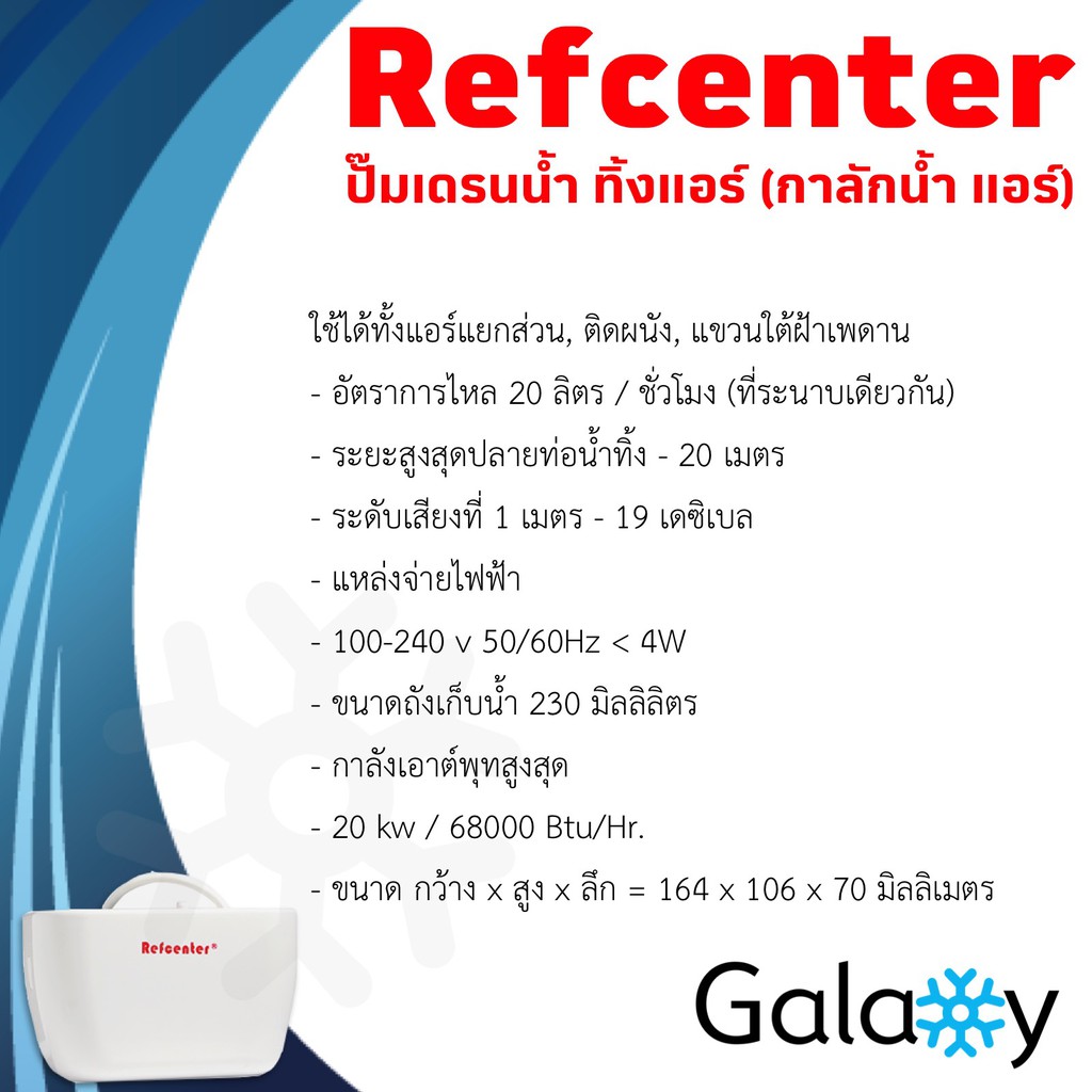 ปั๊มเดรนน้ำทิ้งแอร์ (กาลักน้ำแอร์) Refcenter รุ่น MUTE WEDGE สำหรับแอร์ 9000-75000BTU