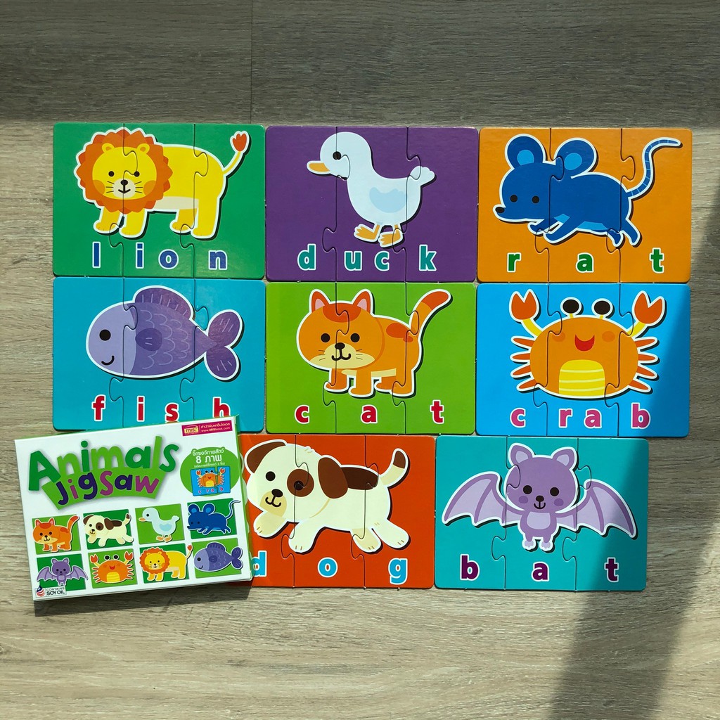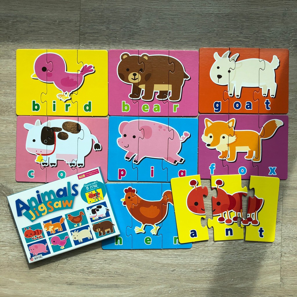 จิ๊กซอว์ภาพสัตว์น่ารักๆ พร้อมคำศัพท์ภาษาอังกฤษ บรรจุกล่องละ 8 ภาพ แต่ละภาพมีจิ๊กซอว์ 3 ชิ้น ชิ้นใหญ่ จับถนัดมือ กระดาษของเราหนามาก ฉีกไม่ขาด ทนทานสุดๆ ตอบโจทย์เด็กวัย 2-6 ปี การเล่นต่อจิ๊กซอว์มีประโยชน์มหาศาล ดีกับสมองลูก ดีกว่าปล่อยลูกไว้กับมือถือ สายต